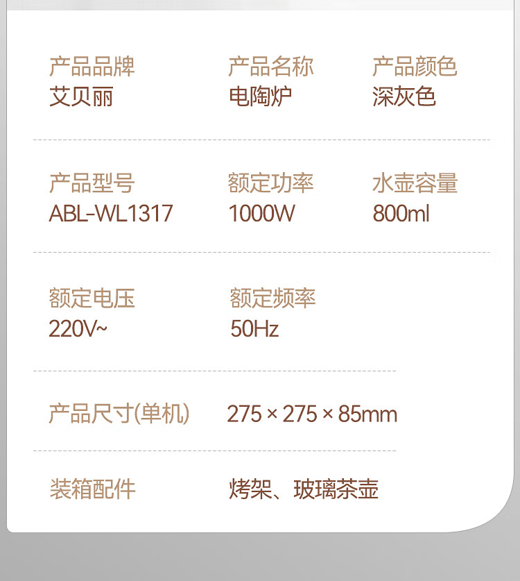 商品名称:ABEREVE/艾贝丽围炉煮茶器ABL-WL1317