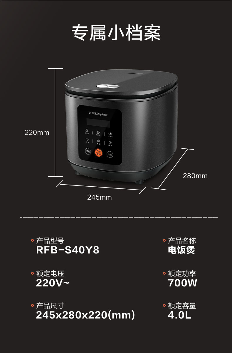 商品名称:Royalstar/荣事达4升电饭煲RFB-S40Y8