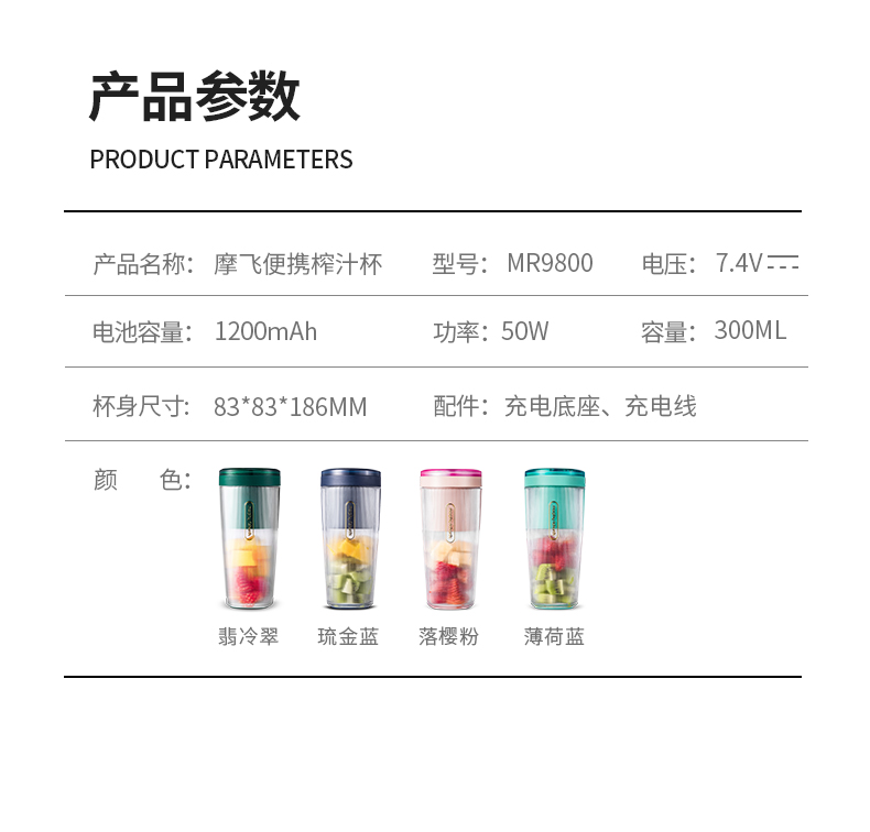 商品名称:Morphy Richards/摩飞300毫升便携式榨汁杯MR9800