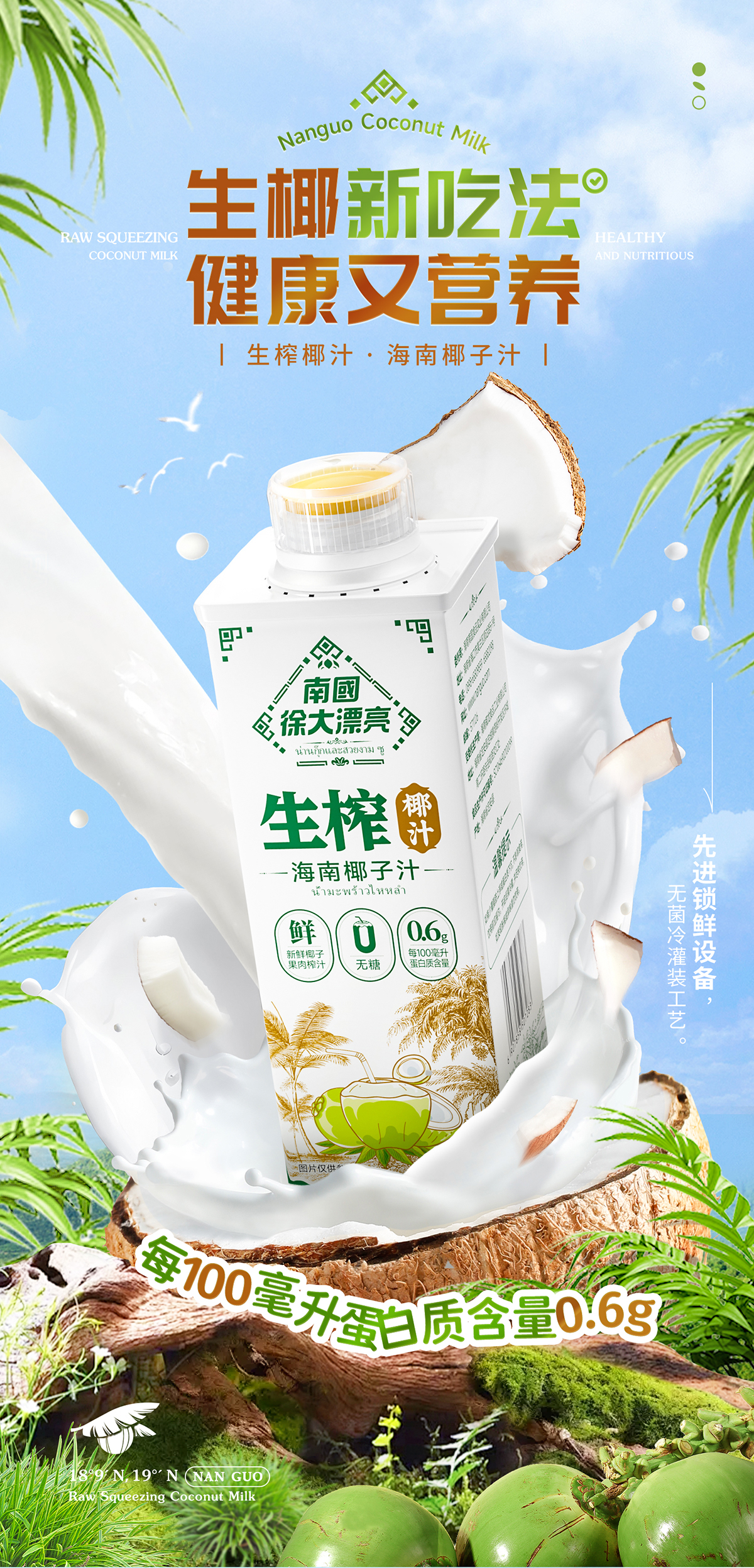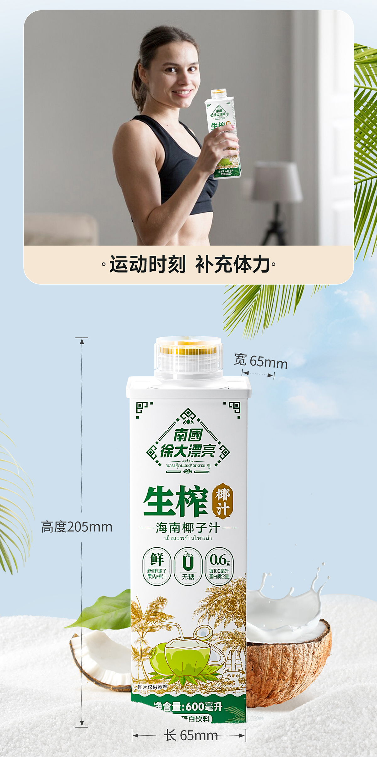 商品名称:南国徐大漂亮0糖生榨椰汁600ml*6瓶