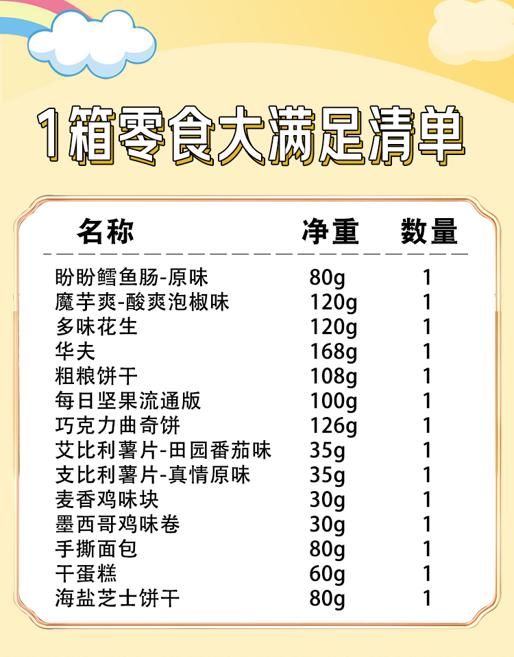 商品名称:盼盼1箱零食大满足1172g