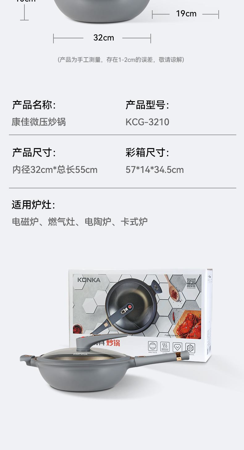商品名称:KONKA/康佳32cm微压炒锅KCG-3210