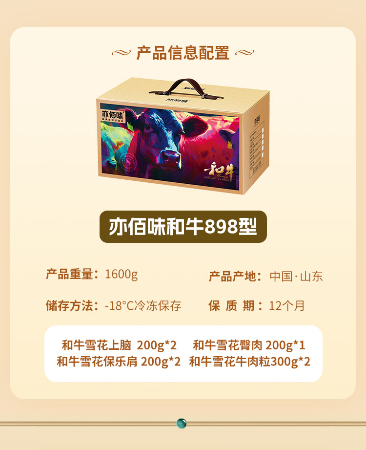 商品名称:【京东/顺丰配送】亦佰味和牛生鲜礼盒898型1600g