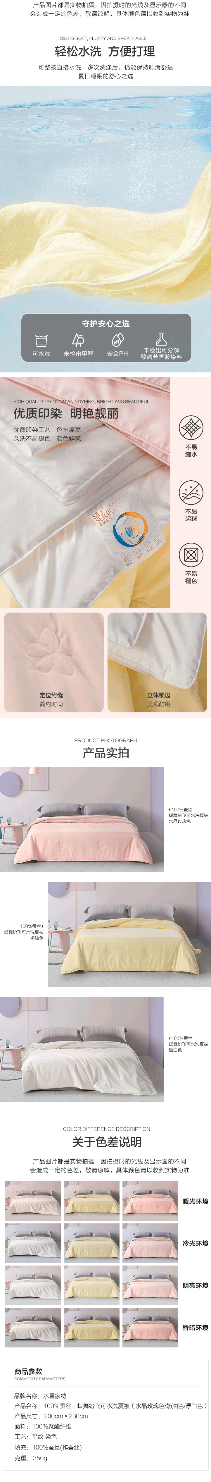 商品名称:水星家纺100%蚕丝蝶舞纷飞可水洗夏被200*230cm 350g