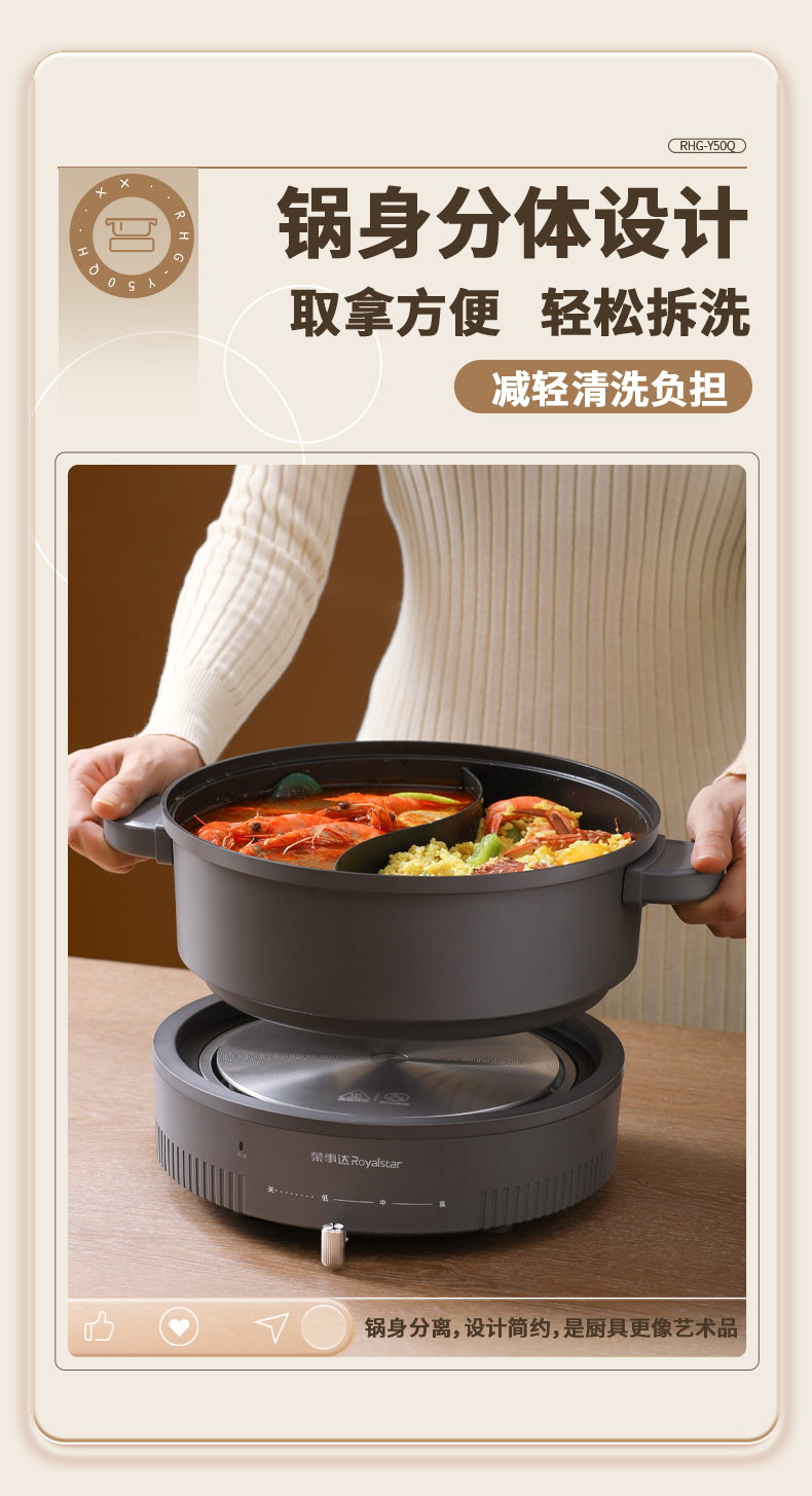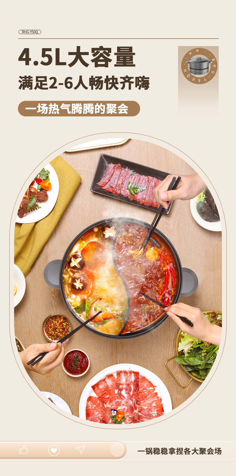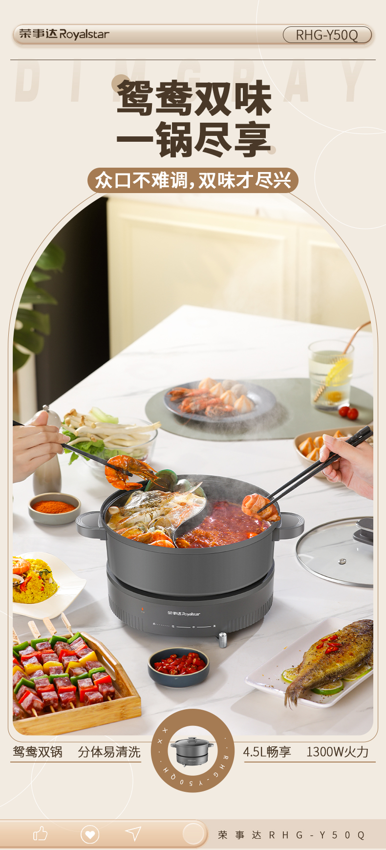 Royalstar/荣事达4.5升鸳鸯电火锅RHG-Y50Q