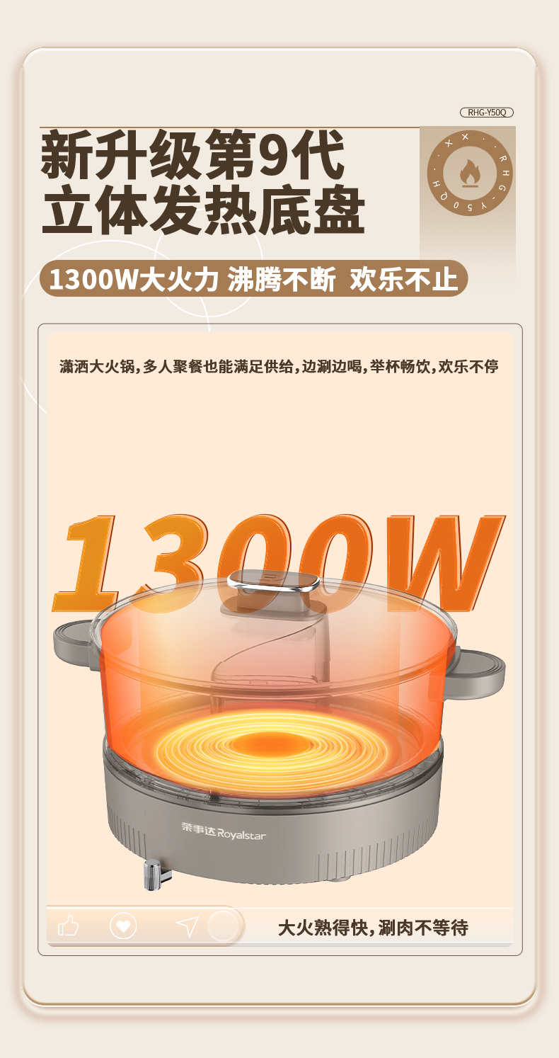 商品名称:Royalstar/荣事达4.5升鸳鸯电火锅RHG-Y50Q