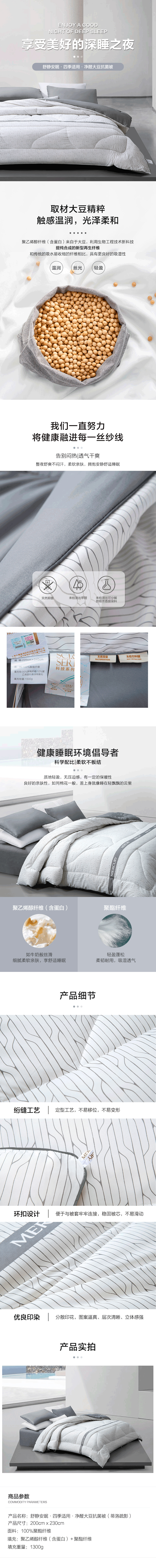 商品名称:水星家纺蒂洛疏影舒静安眠四季适用净醛大豆抗菌被200*230g 1300g