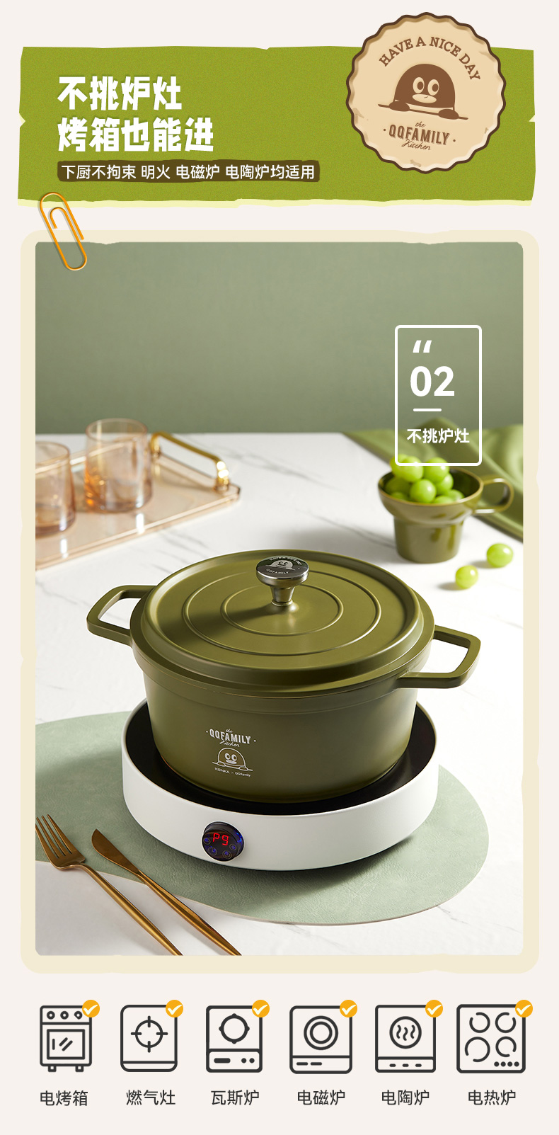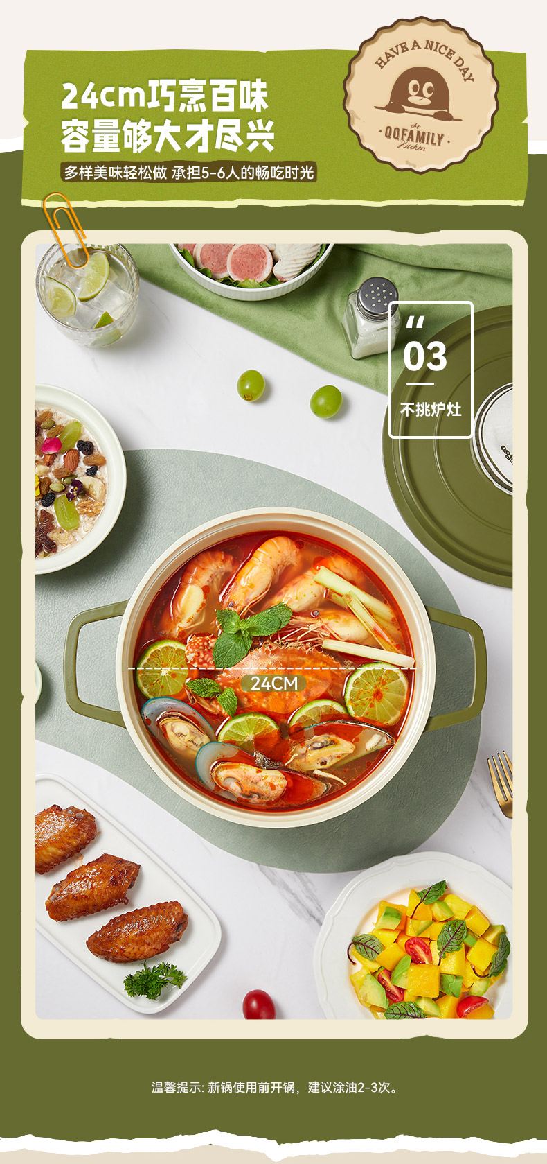 KONKA/康佳QQfamily联名款24cm珐琅锅KTG-2402-QQ