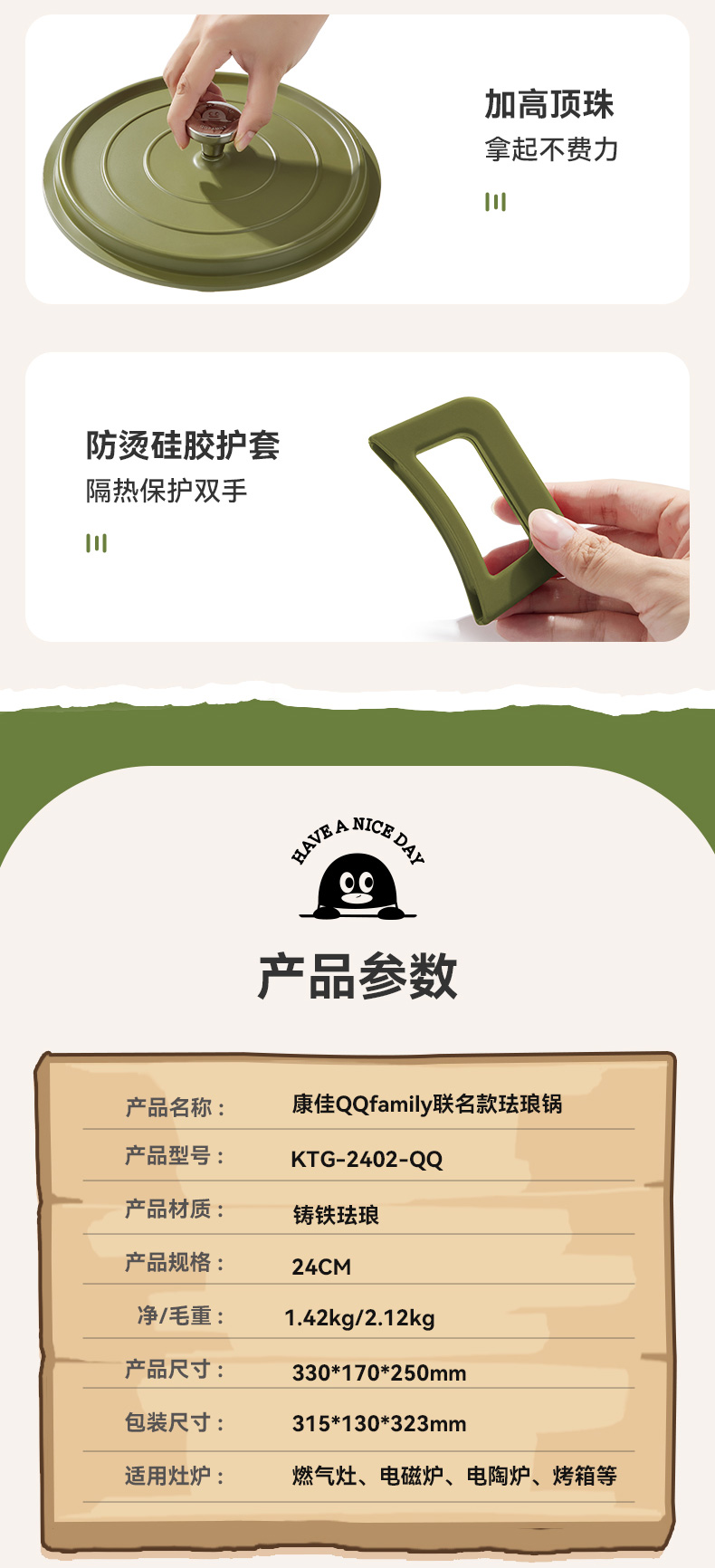 商品名称:KONKA/康佳QQfamily联名款24cm珐琅锅KTG-2402-QQ