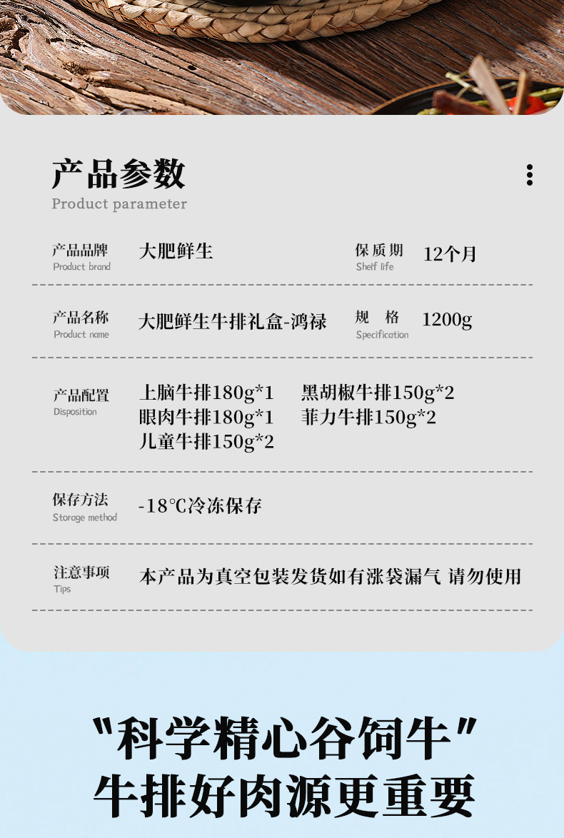 商品名称:【京东/顺丰配送】大肥鲜生鸿禄牛排礼盒1200g
