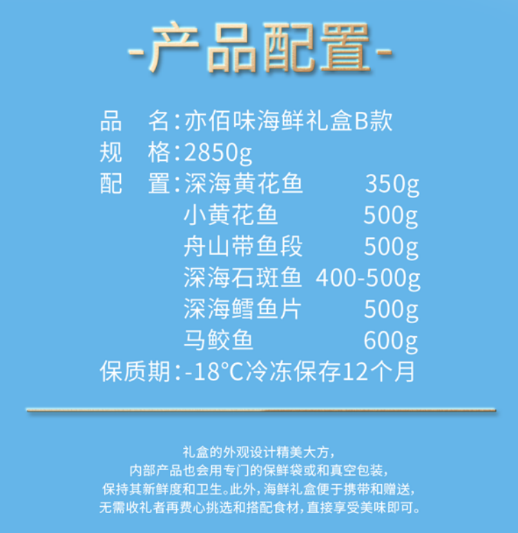 商品名称:【京东/顺丰配送】亦佰味海鲜生鲜礼盒B款约2850g