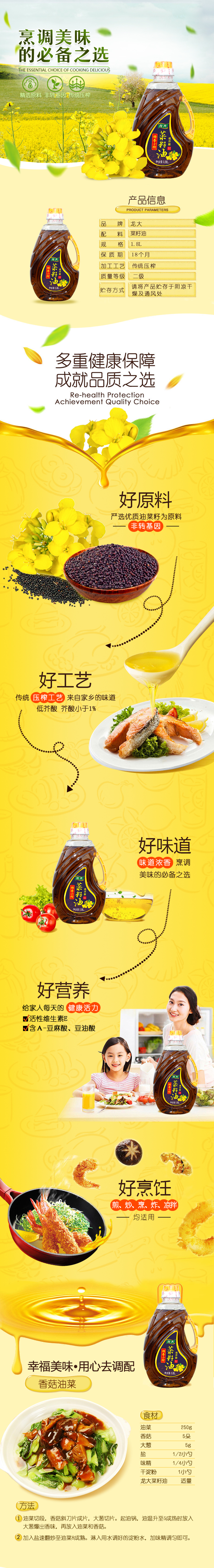 商品名称:龙大特香小榨低芥酸菜籽油1.8L