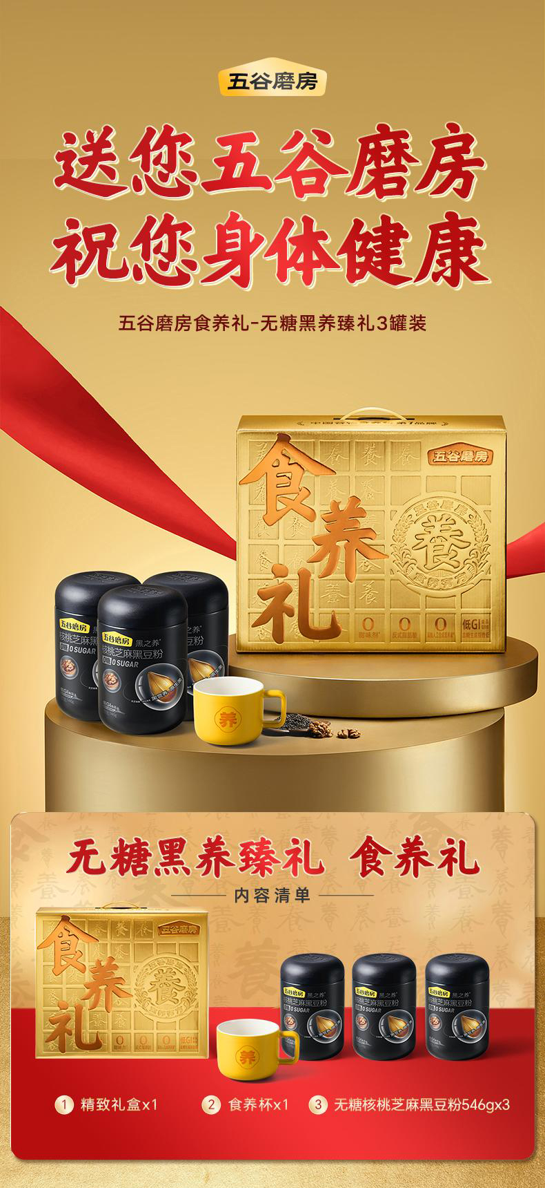 商品名称:五谷磨房0糖核桃芝麻黑豆粉礼盒1638g