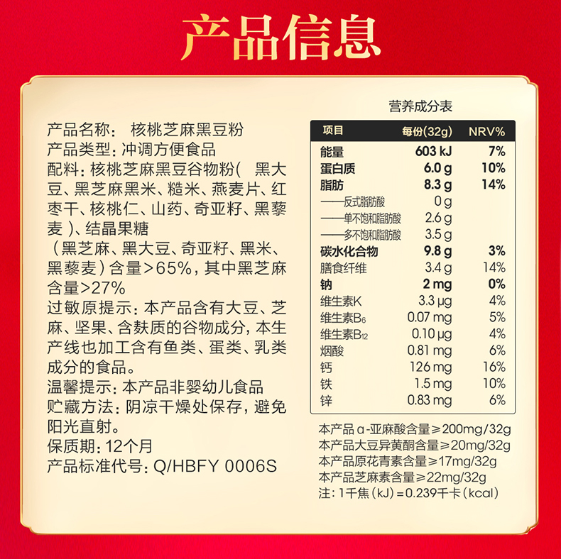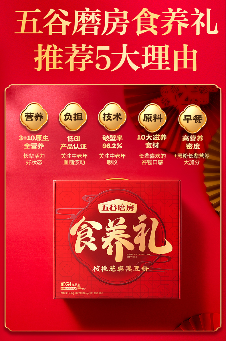 商品名称:五谷磨房食养礼核桃芝麻黑豆粉礼盒936g