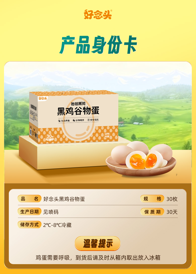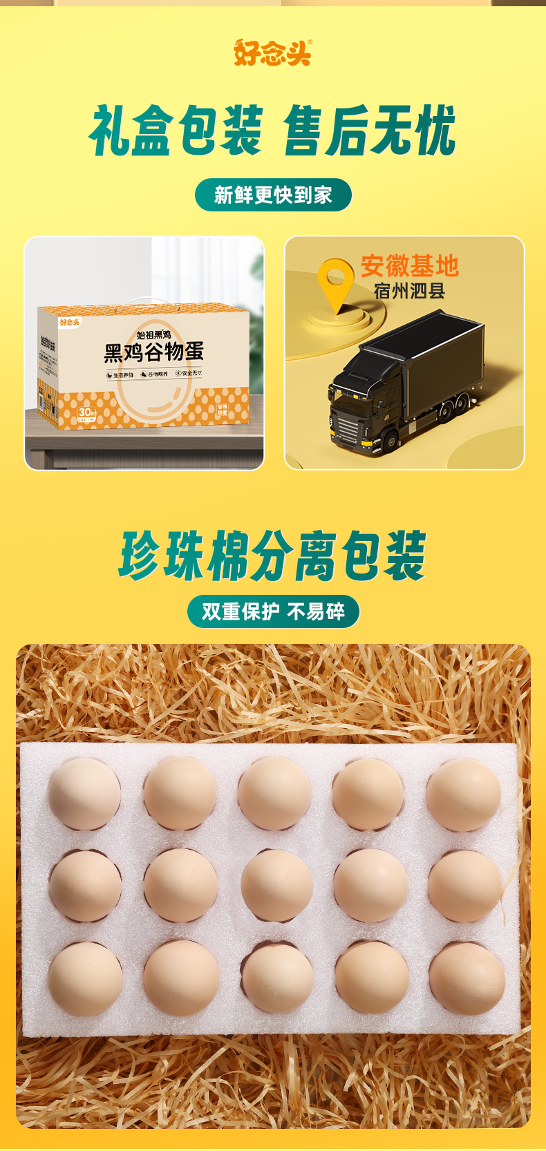 商品名称:【顺丰配送】好念头始祖黑鸡谷物鲜鸡蛋30枚约1200g