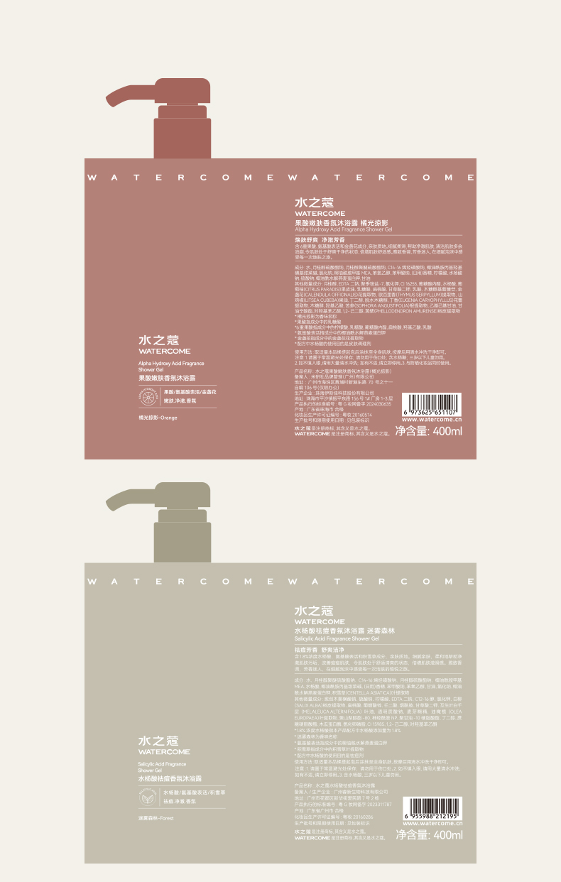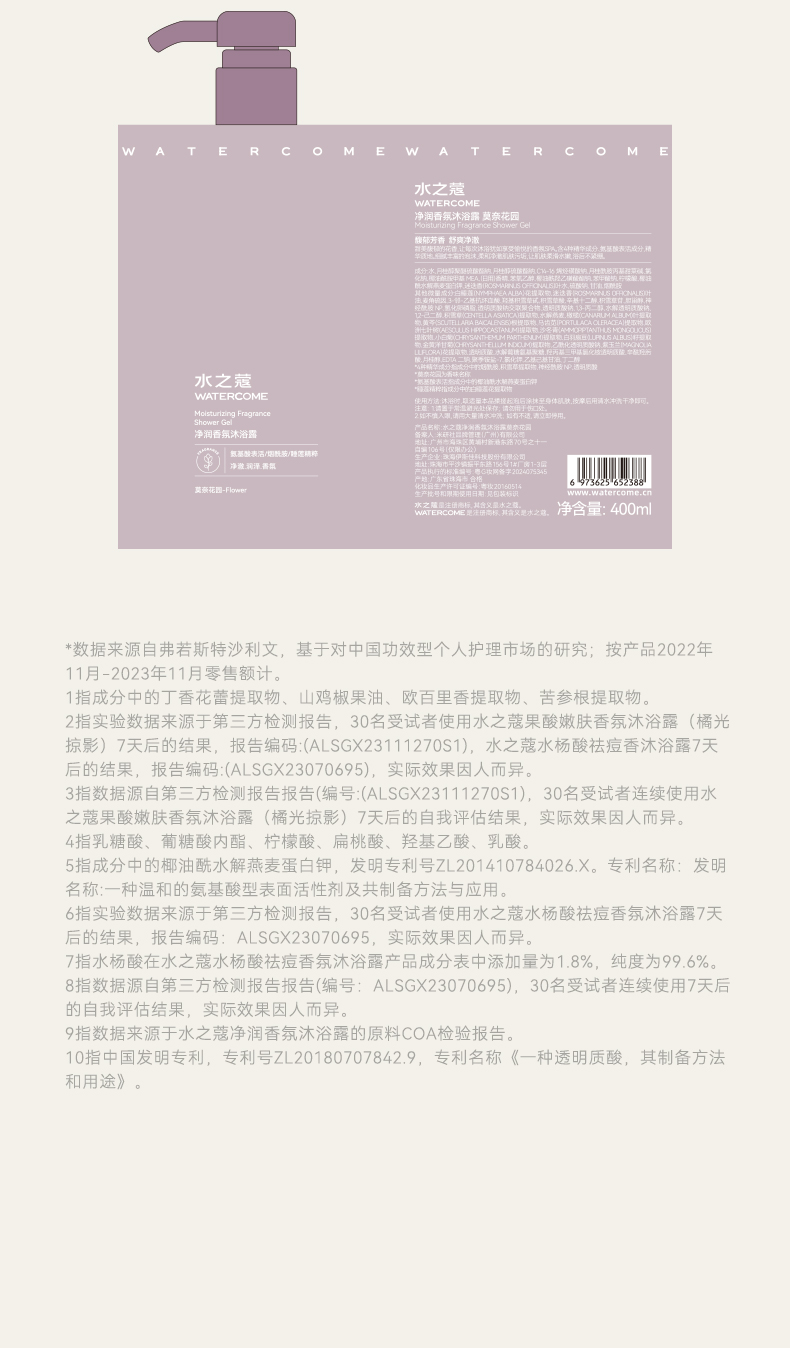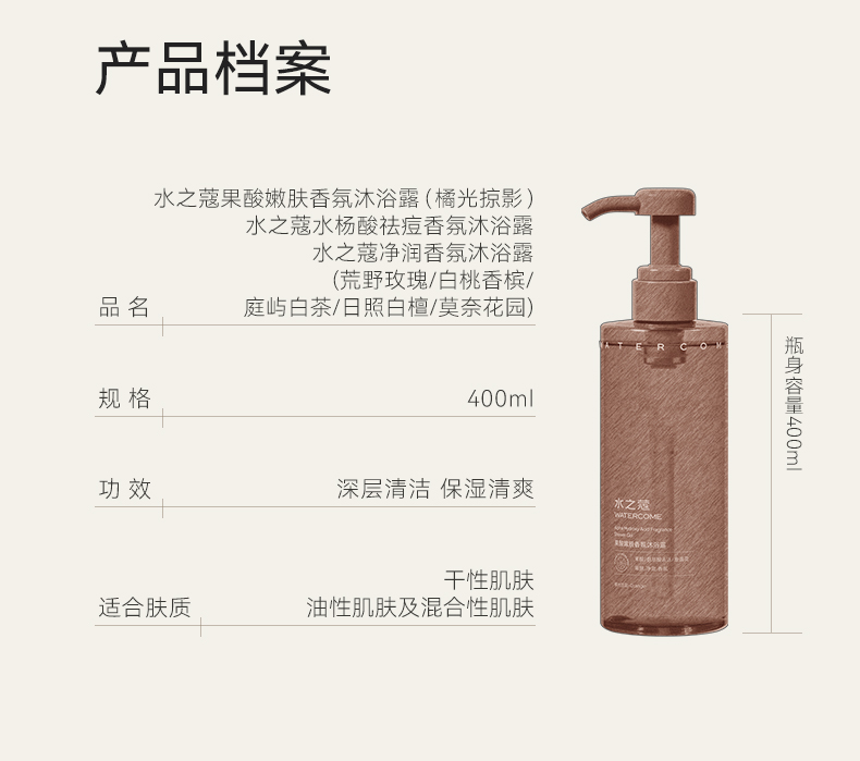 商品名称:WATERCOME/水之蔻香氛沐浴露400ml*2瓶