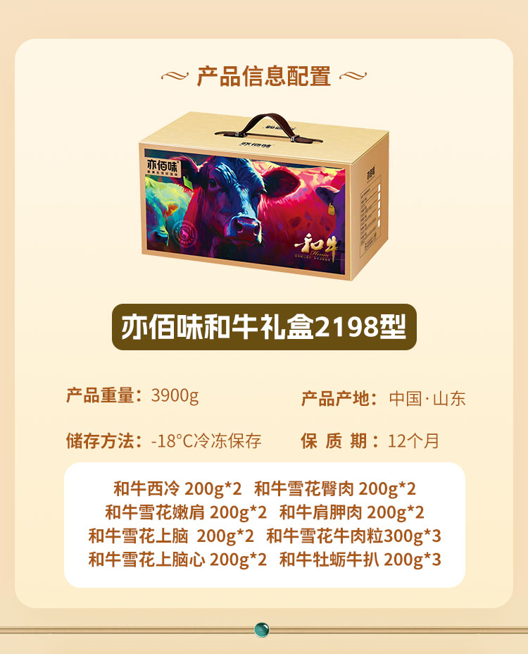 商品名称:【京东/顺丰配送】亦佰味和牛生鲜礼盒2198型3900g