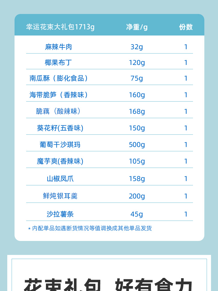 商品名称:良品铺子幸运花礼零食大礼包298型1713g