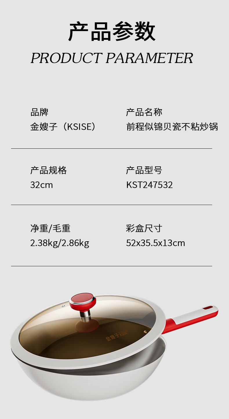 KSISE/金嫂子32cm前程似锦贝瓷不粘炒锅KST247532