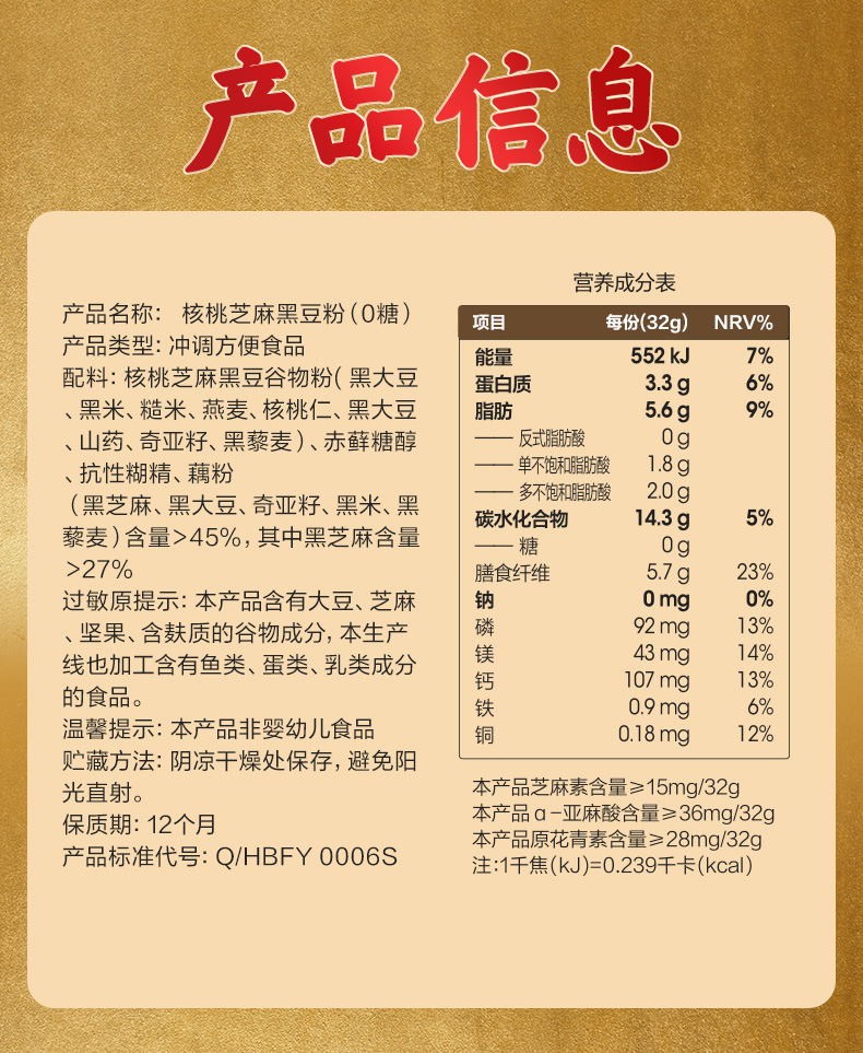 商品名称:五谷磨房食养礼无糖焕黑豆粉礼盒1092g