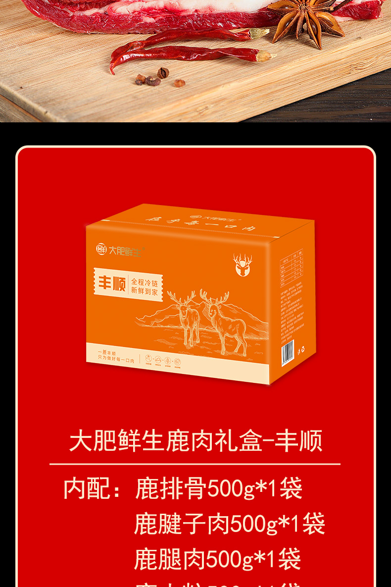 商品名称:【京东/顺丰配送】大肥鲜生丰顺鹿肉礼盒2500g