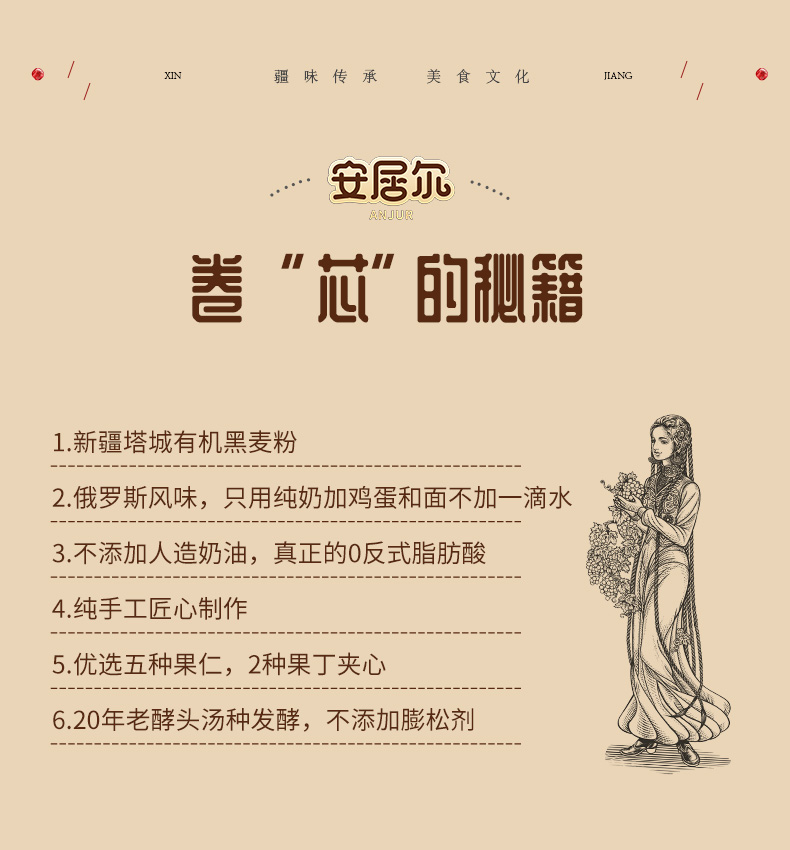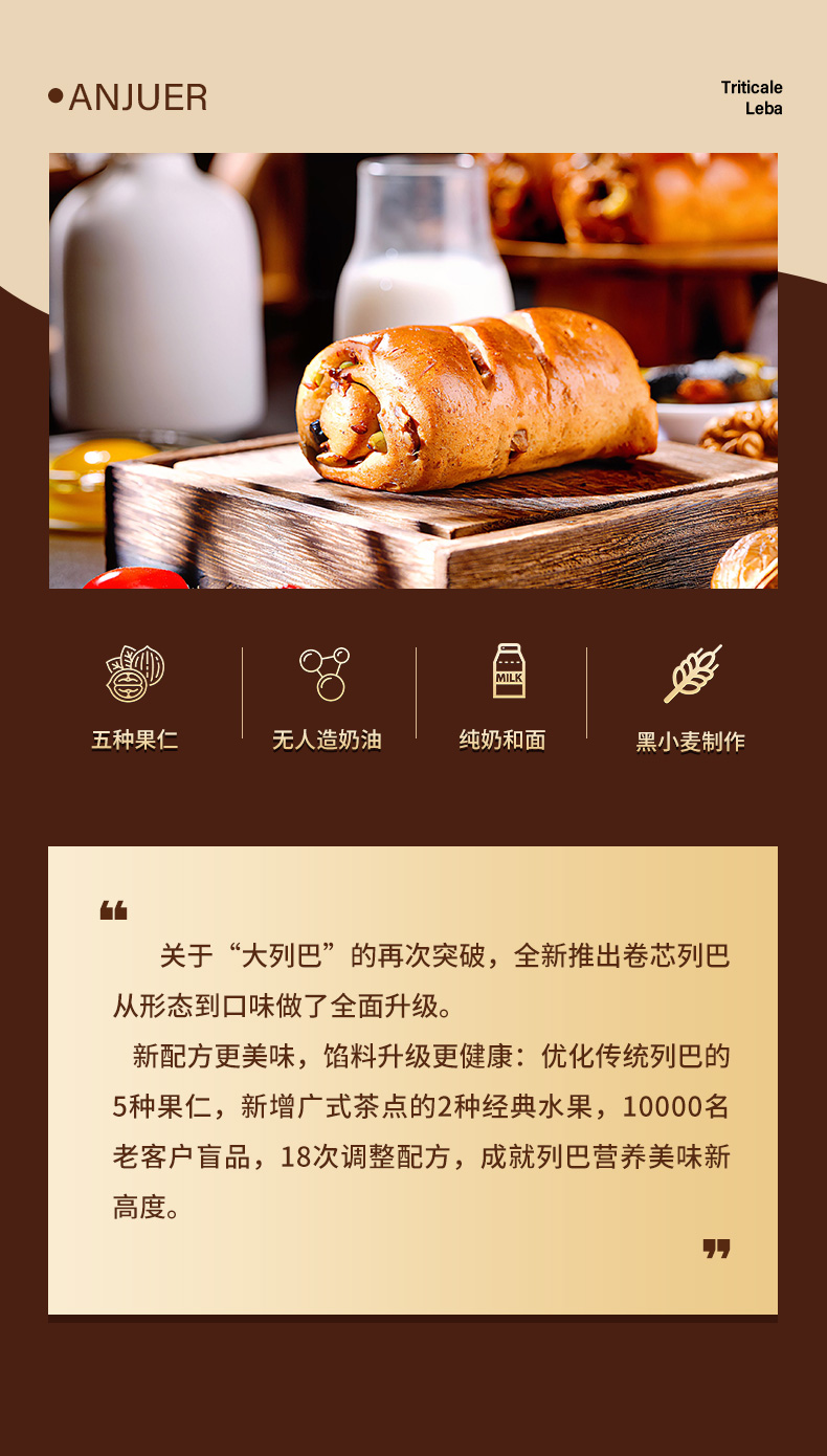 商品名称:ANJUR/安居尔黑麦卷芯列巴60g*7根