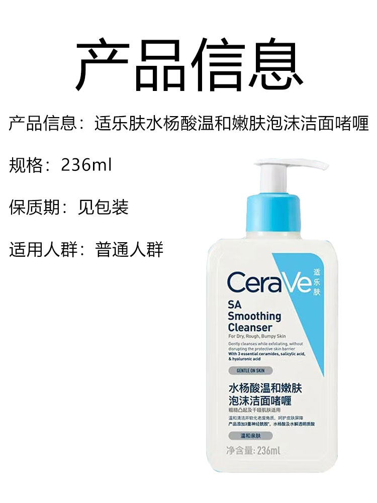 商品名称:CeraVe/适乐肤水杨酸温和嫩肤泡沫洁面啫喱236ml