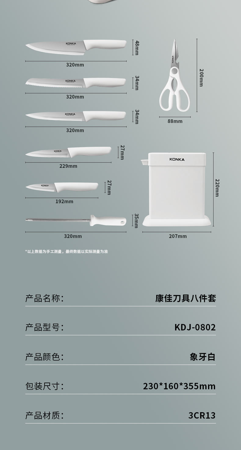 商品名称:KONKA/康佳刀具八件套-象牙白KDJ-0802