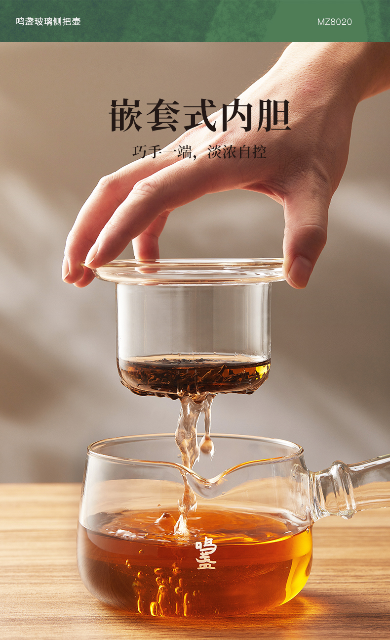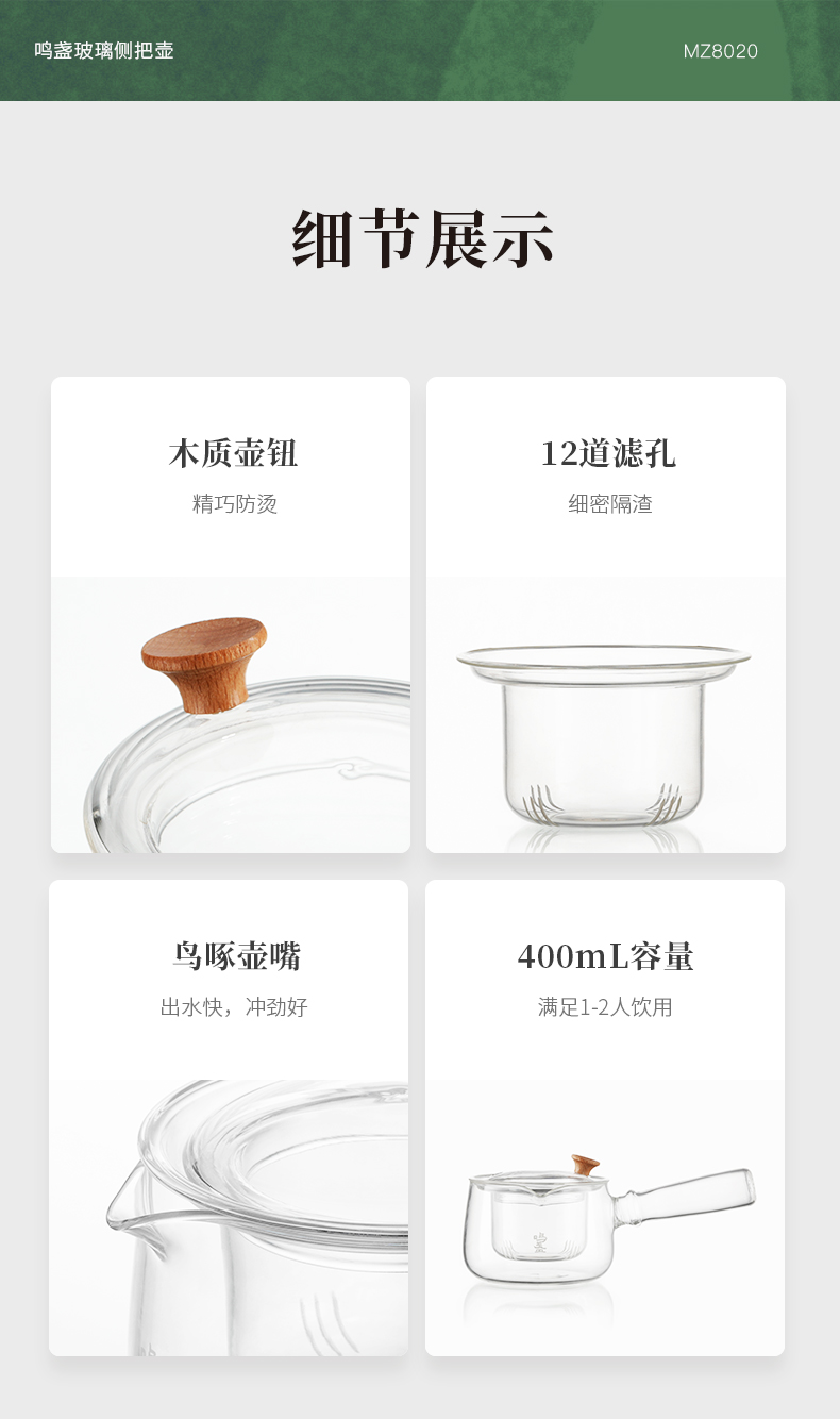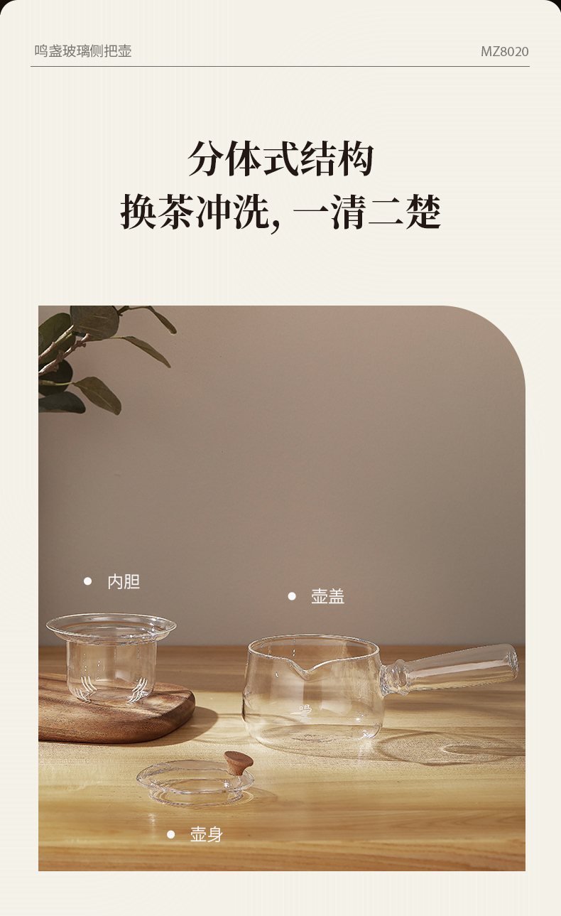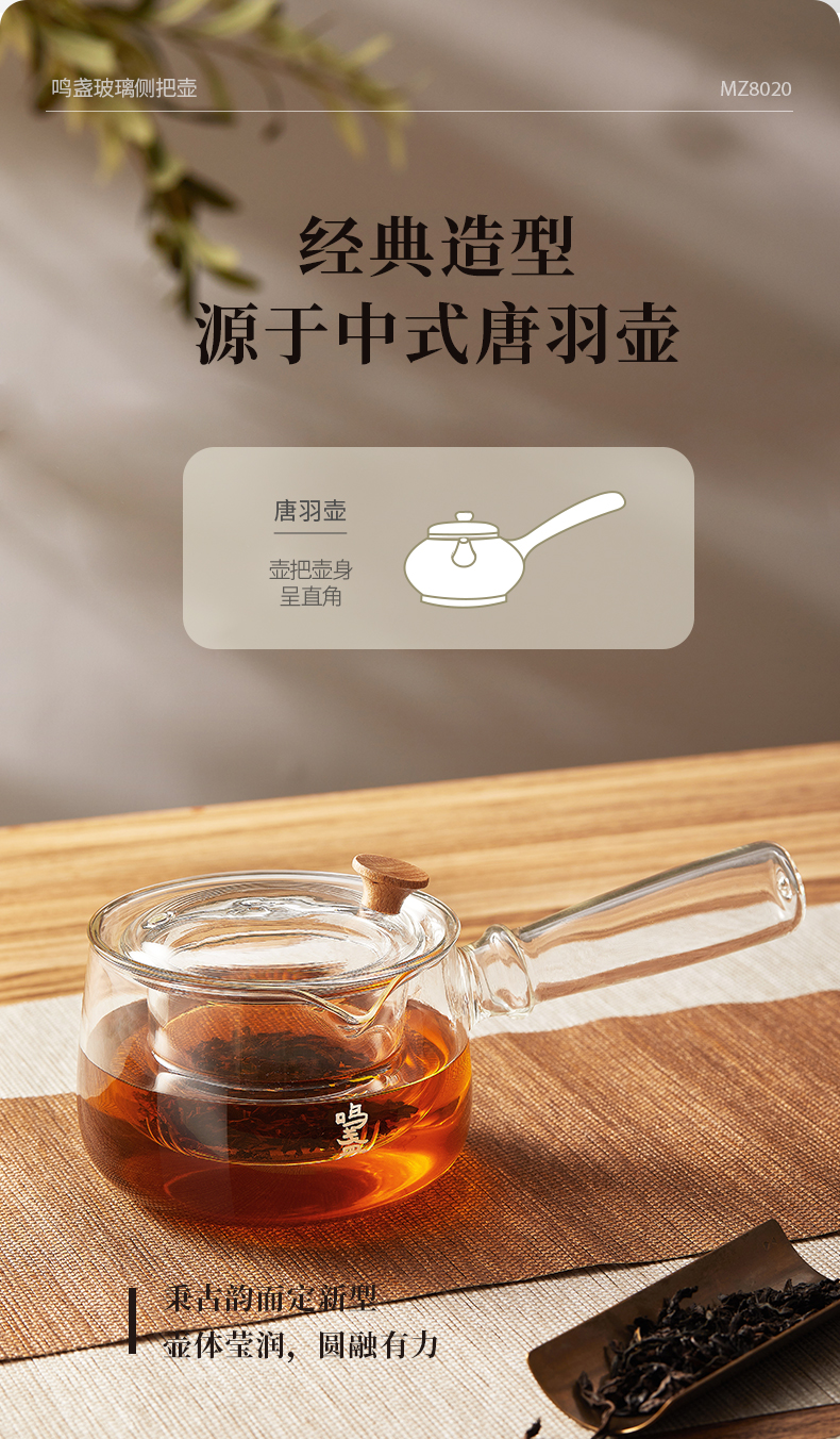 商品名称:鸣盏400毫升玻璃侧把壶MZ8020