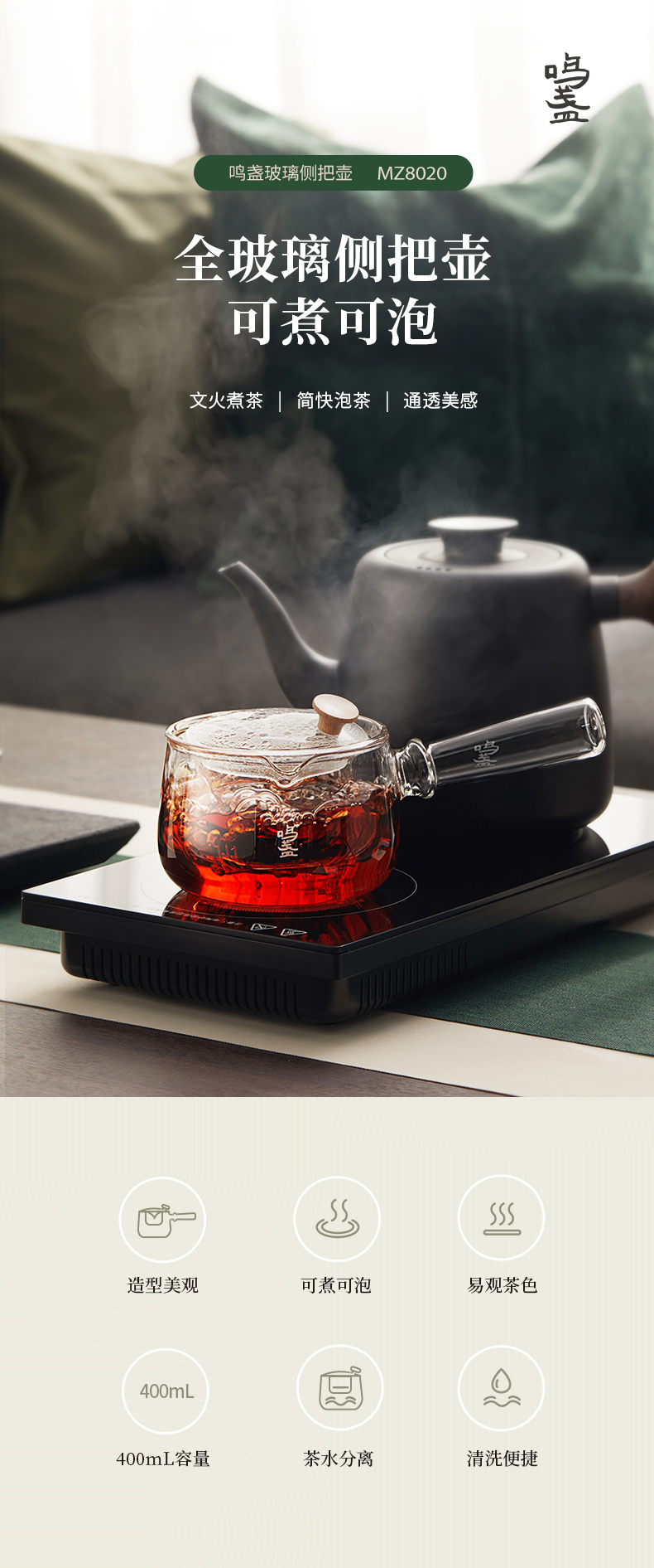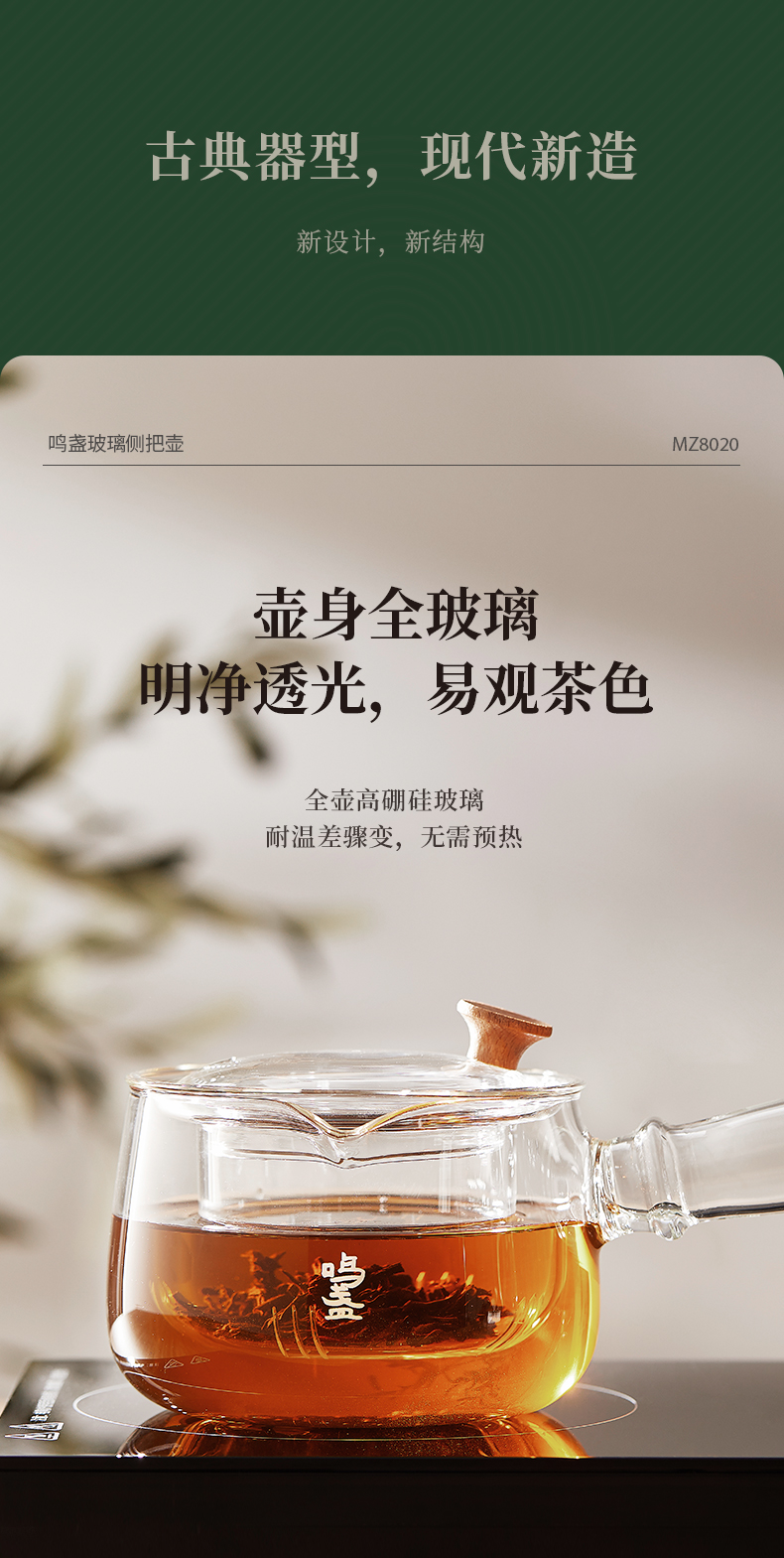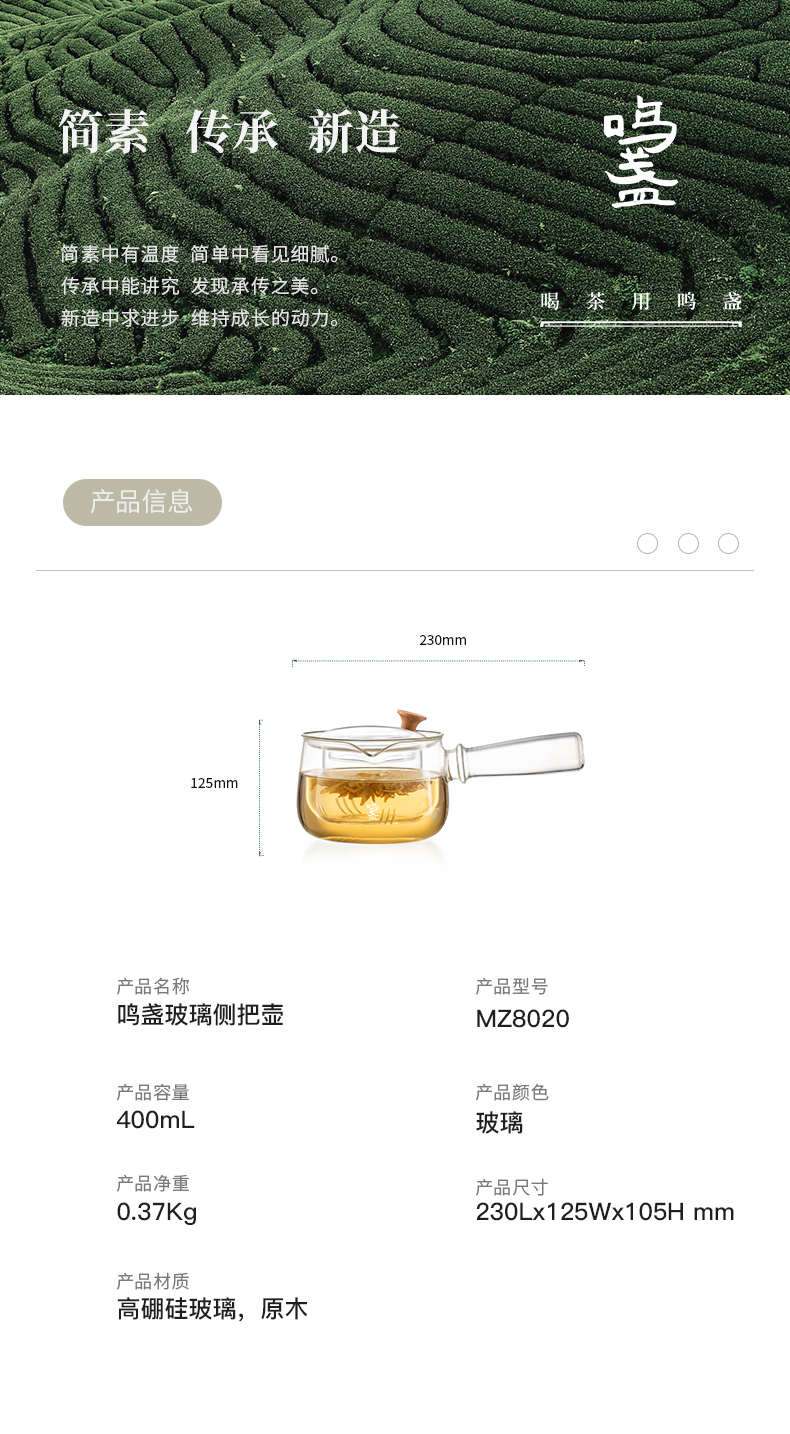 商品名称:鸣盏400毫升玻璃侧把壶MZ8020