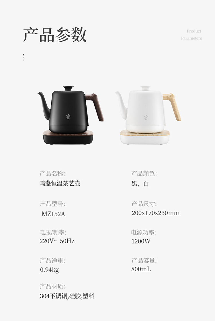 商品名称:鸣盏800毫升恒温茶艺壶MZ152A