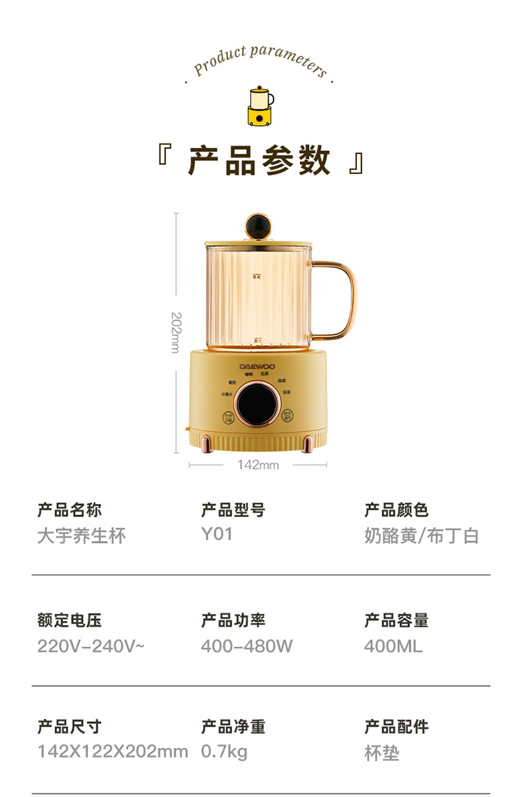 商品名称:DAEWOO/大宇400毫升养生杯Y01