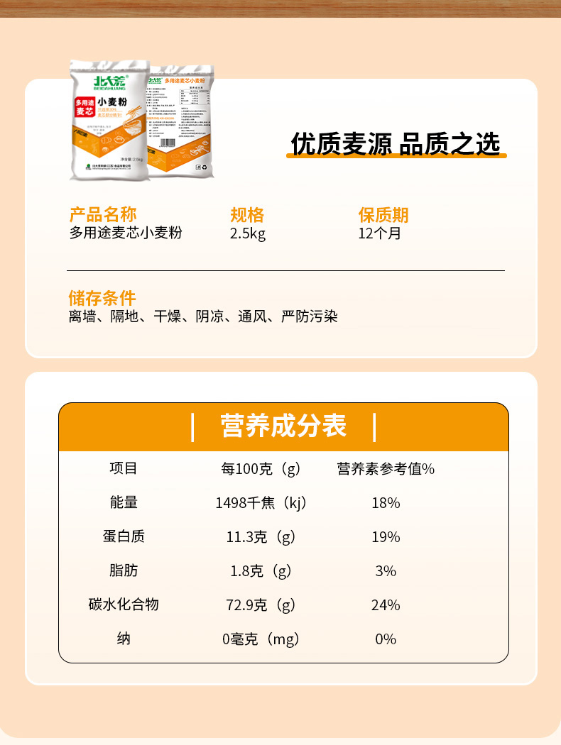 商品名称:北大荒大荒印象多用途麦芯小麦粉2.5kg
