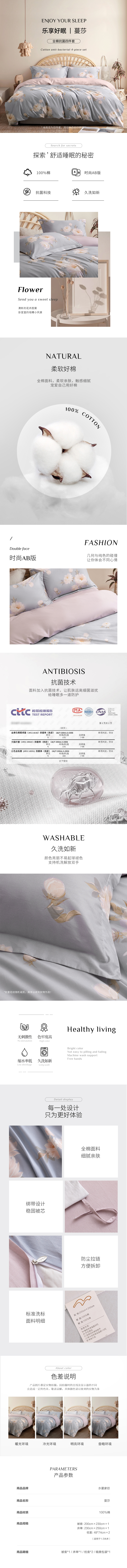 商品名称:水星家纺蔓莎全棉抗菌床品四件套200*230cm