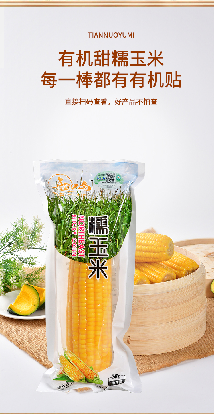 商品名称:豆农亿品有机黄糯玉米约240g*8穗