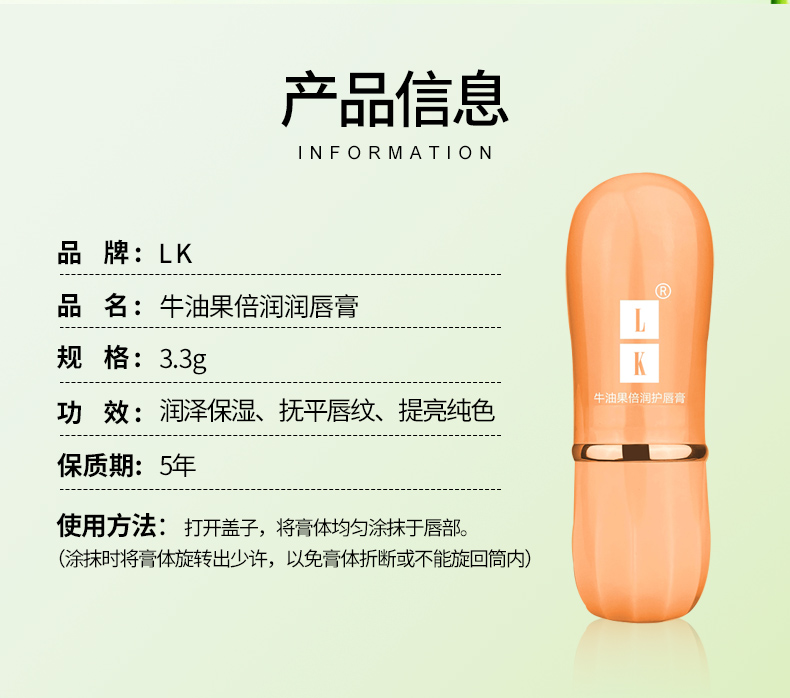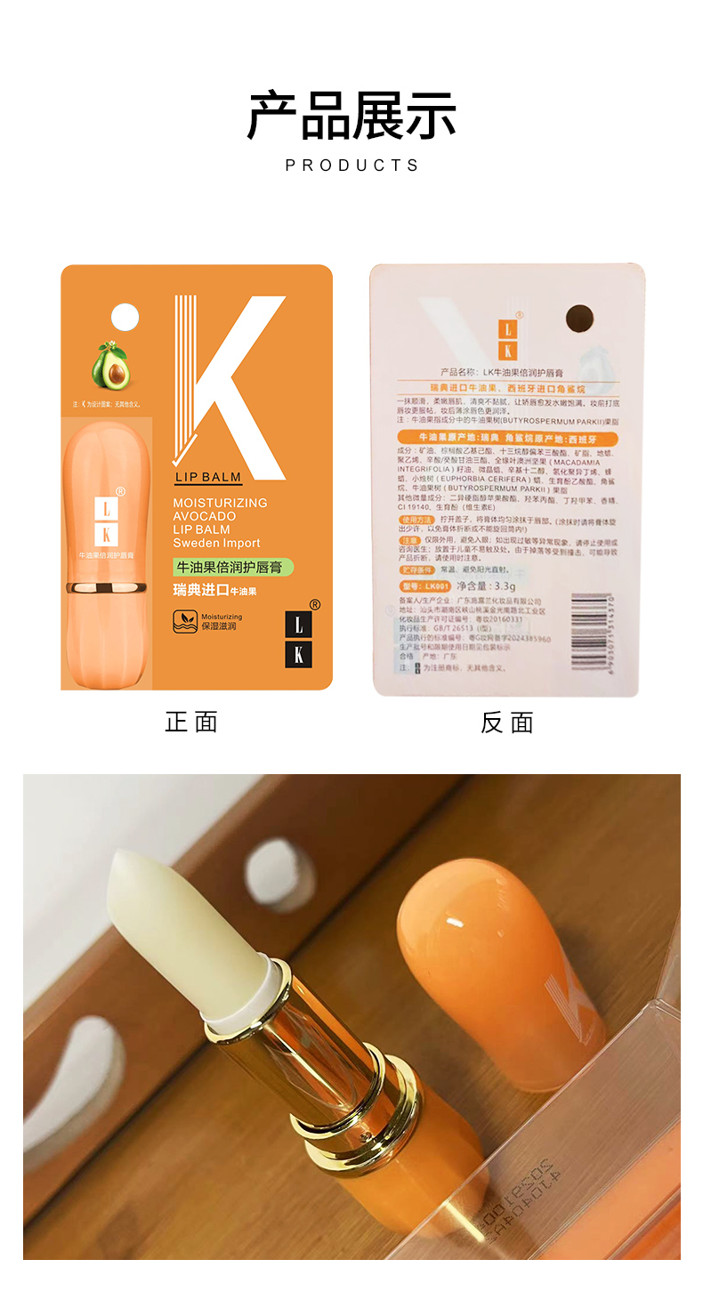 商品名称:LK牛油果倍润护唇膏3.3g*3支