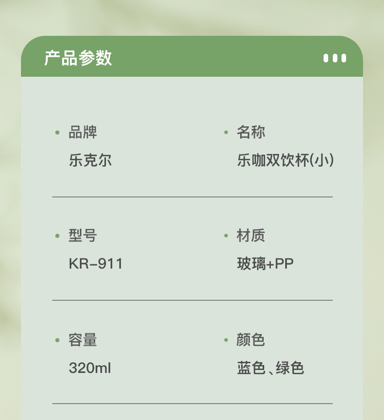 商品名称:Lecker/乐克尔320毫升乐咖双饮杯KR-911