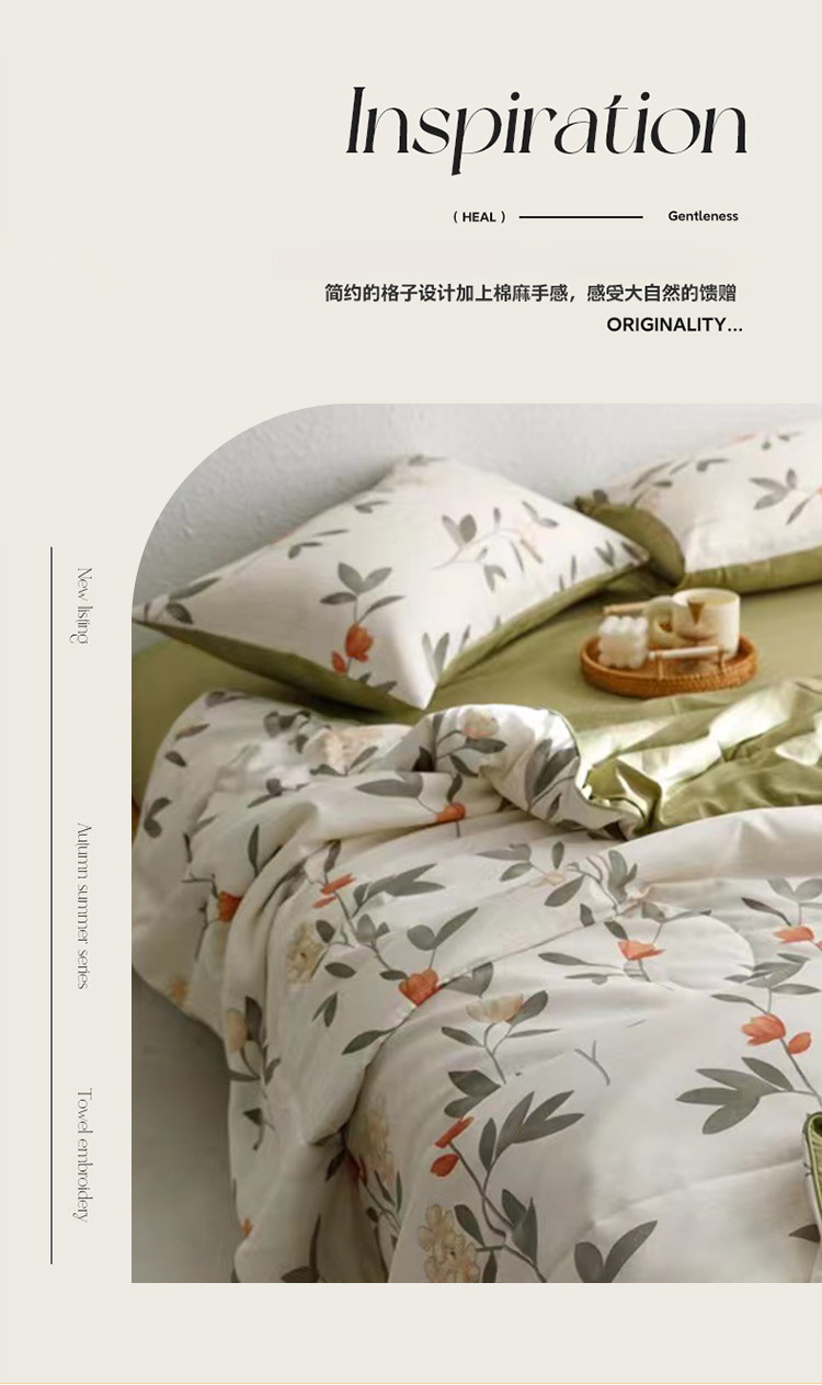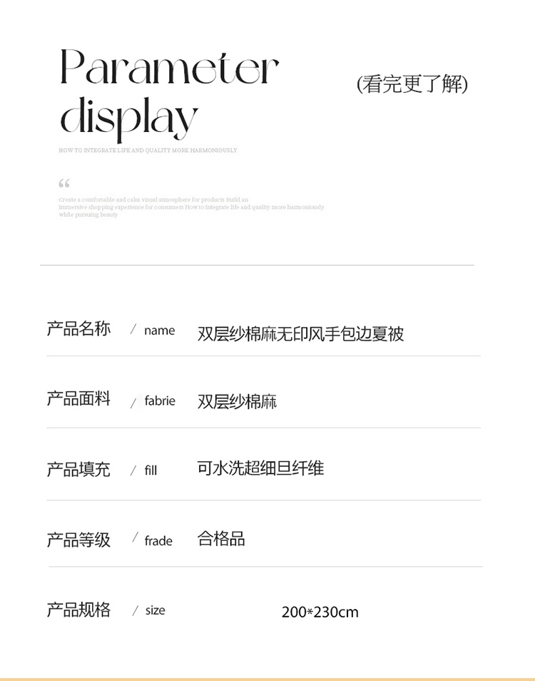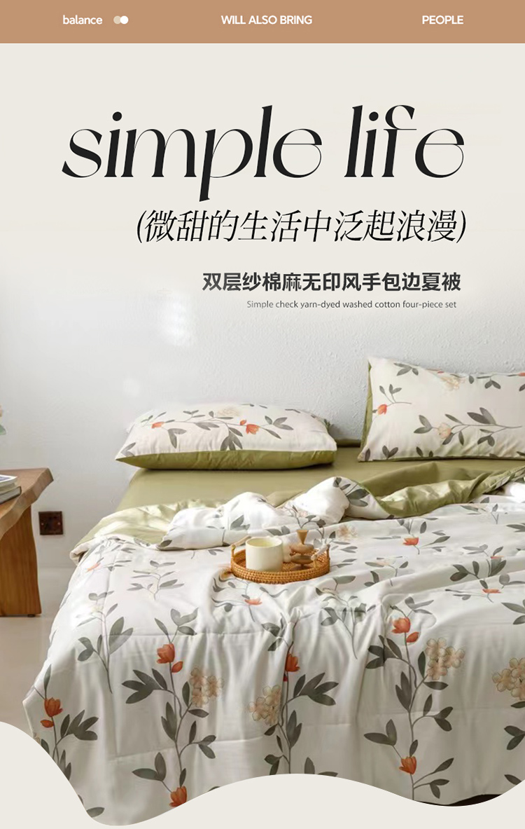 商品名称:舒正简约双层纱棉麻无印风手包边夏被200*230cm 790g
