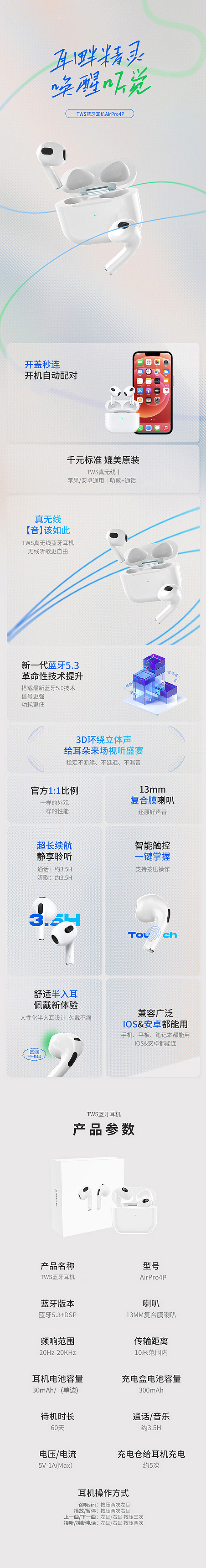 商品名称:WOPOW/沃品TWS蓝牙耳机AirPro4P