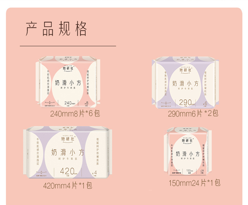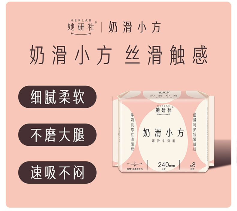 商品名称:Herlab/她研社奶滑小方日夜用卫生巾套装10包88片 新旧包装随机不接受指定