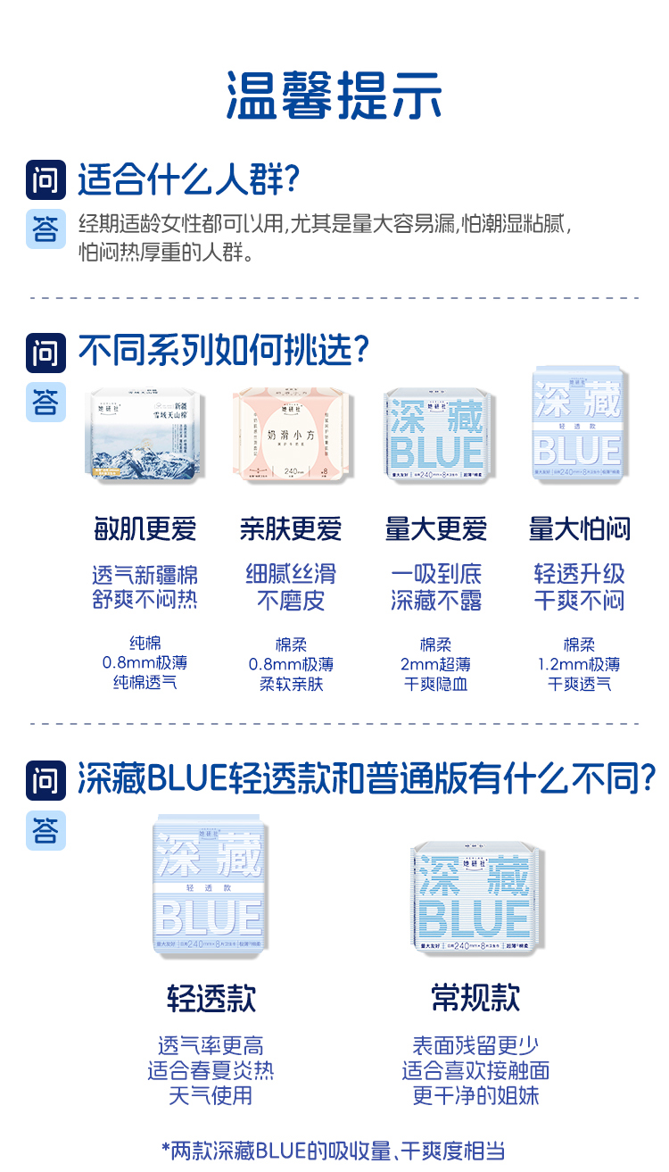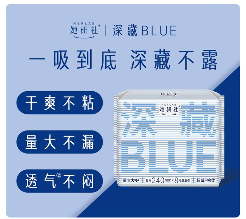商品名称:Herlab/她研社深藏BLUE日用卫生巾组合10包80片