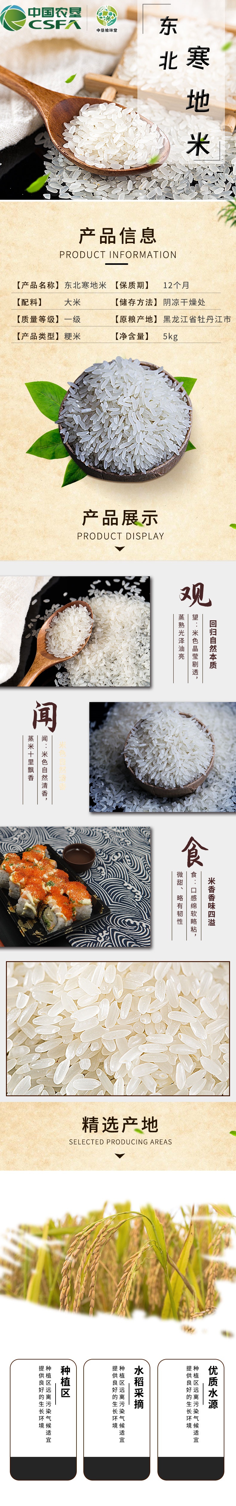 商品名称:'西北专供'【德邦配送】CSFA/中国农垦中垦优选东北寒地米5kg