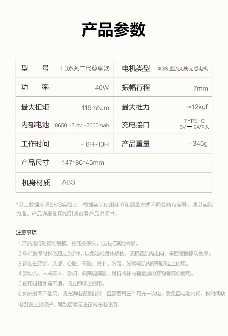 商品名称:【京东/顺丰配送】SKG按摩筋膜枪F3系列2代尊享款