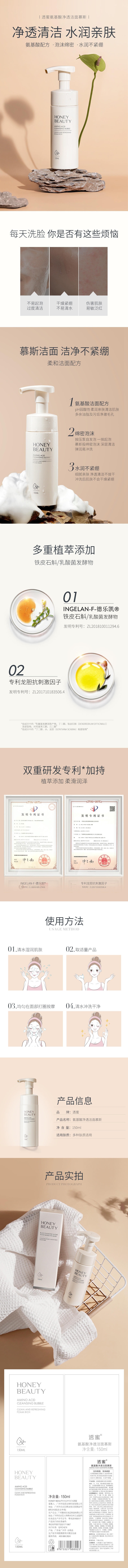 商品名称:HONEY BEAUTY/透蜜氨基酸净透洁面慕斯150ml*2瓶