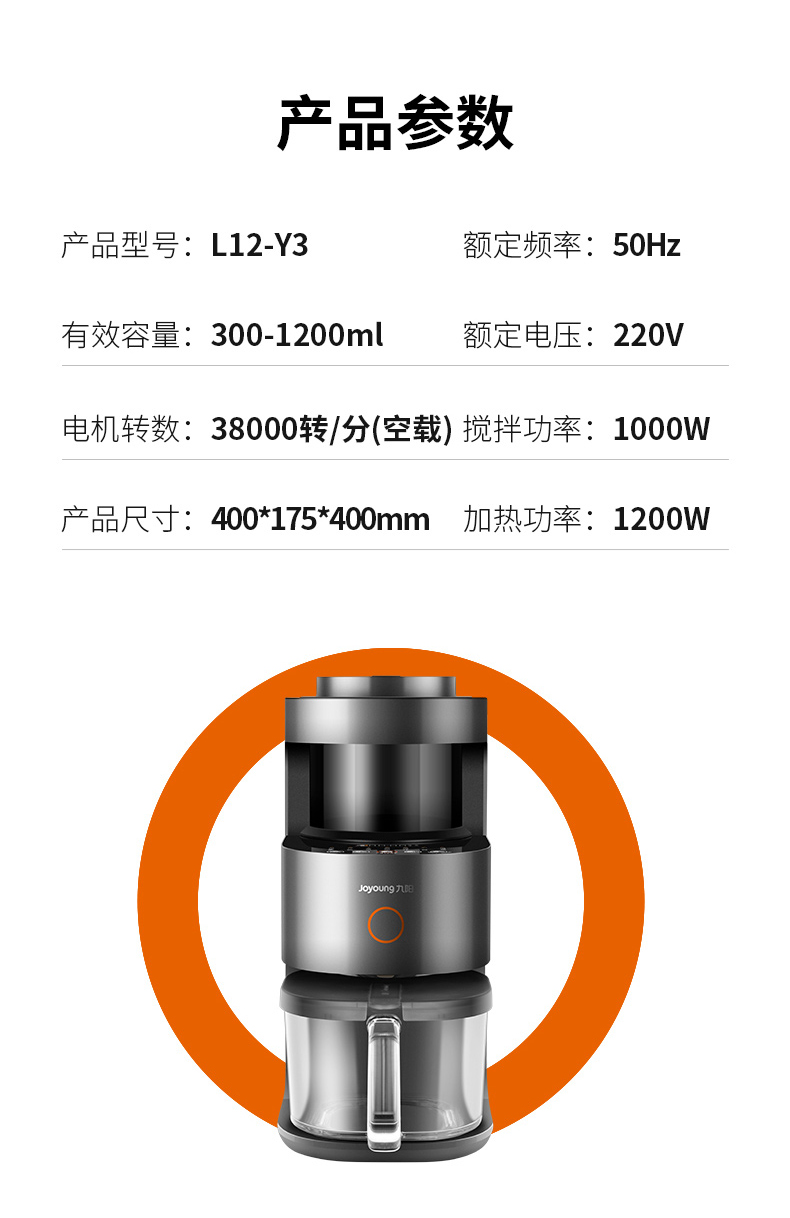 商品名称:【京东/顺丰/德邦配送】Joyoung/九阳1.2升免手洗高端破壁机L12-Y3