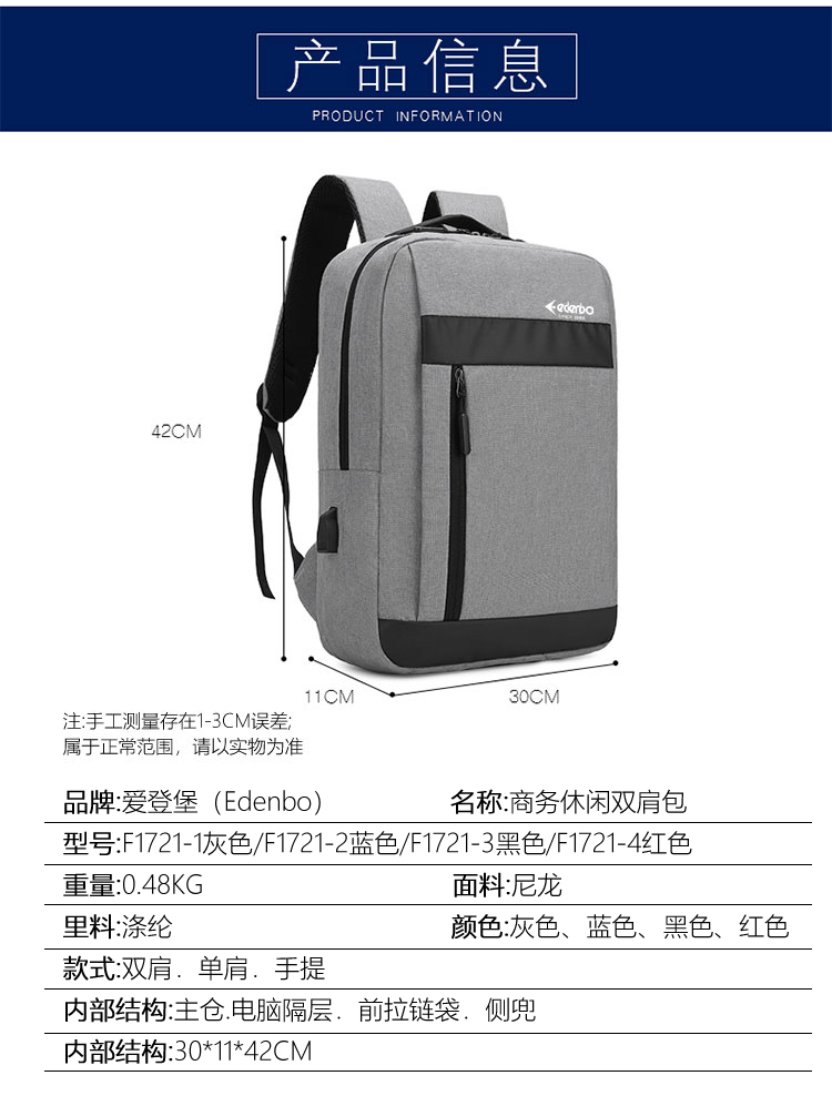商品名称:爱登堡(Edenbo)商务休闲双肩包F1721