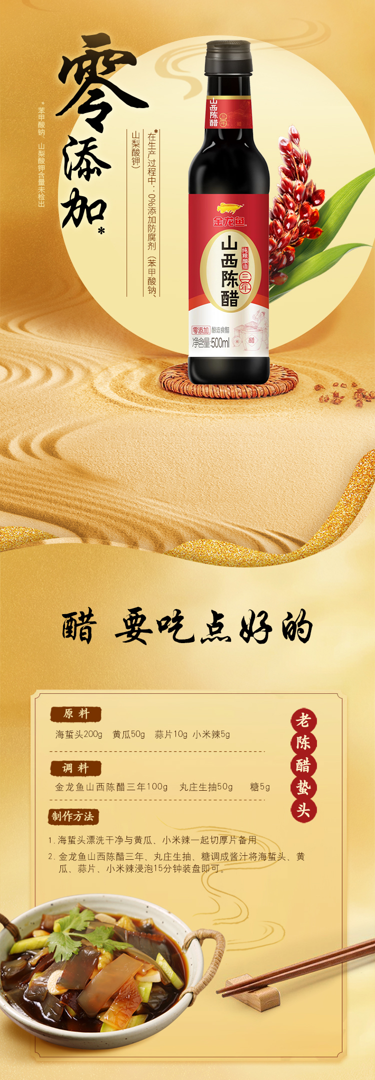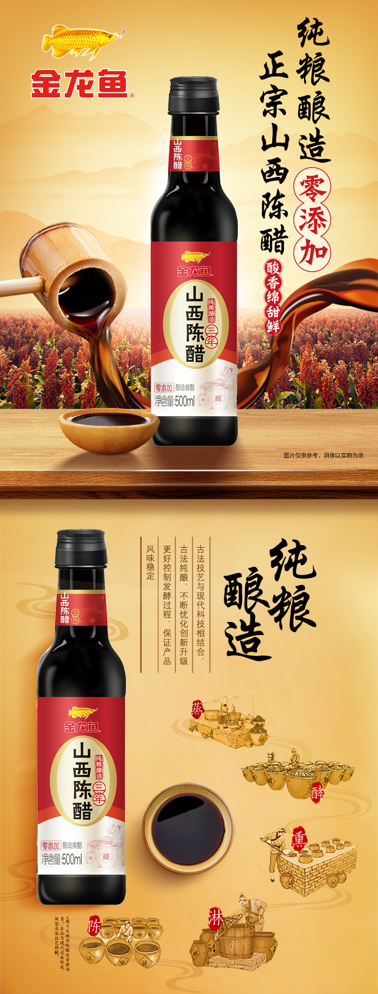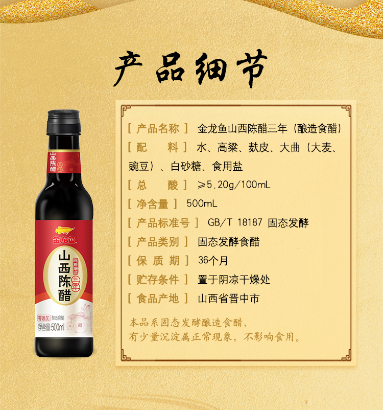 商品名称:金龙鱼三年山西陈醋500ml*2瓶