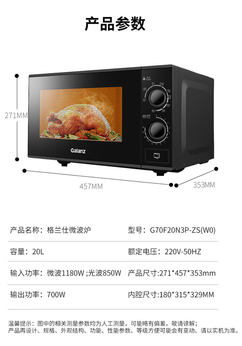 商品名称:Galanz/格兰仕20升微波炉G70F20N3P-ZS(W0)
