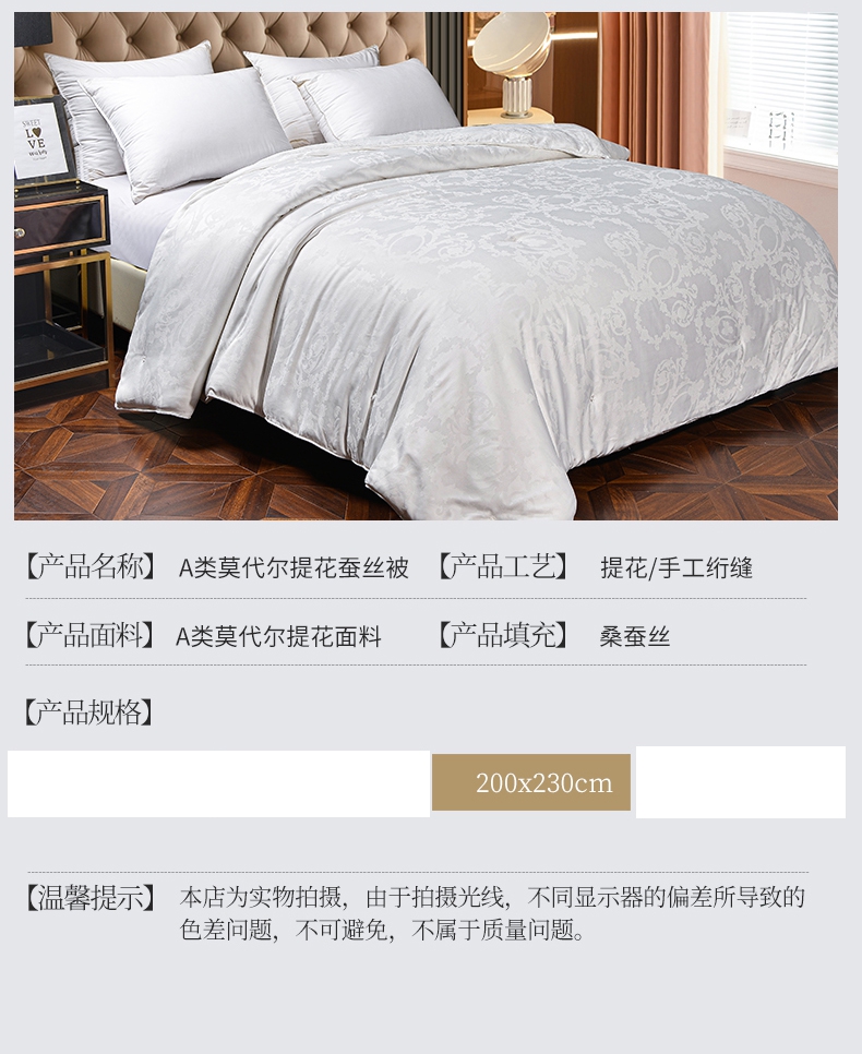 商品名称:舒正米白长绒棉蚕丝夏被200*230cm 860g