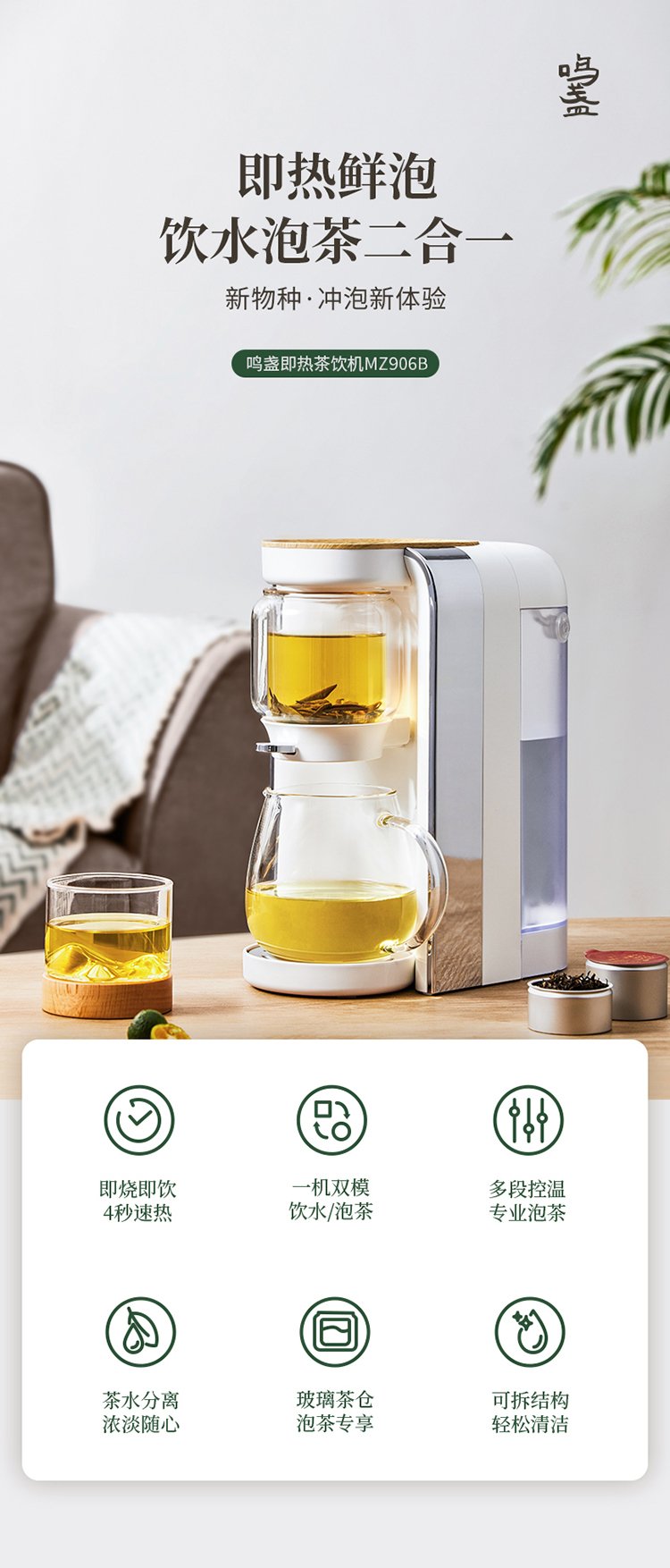 商品名称:鸣盏1.2升即热茶饮机MZ906B